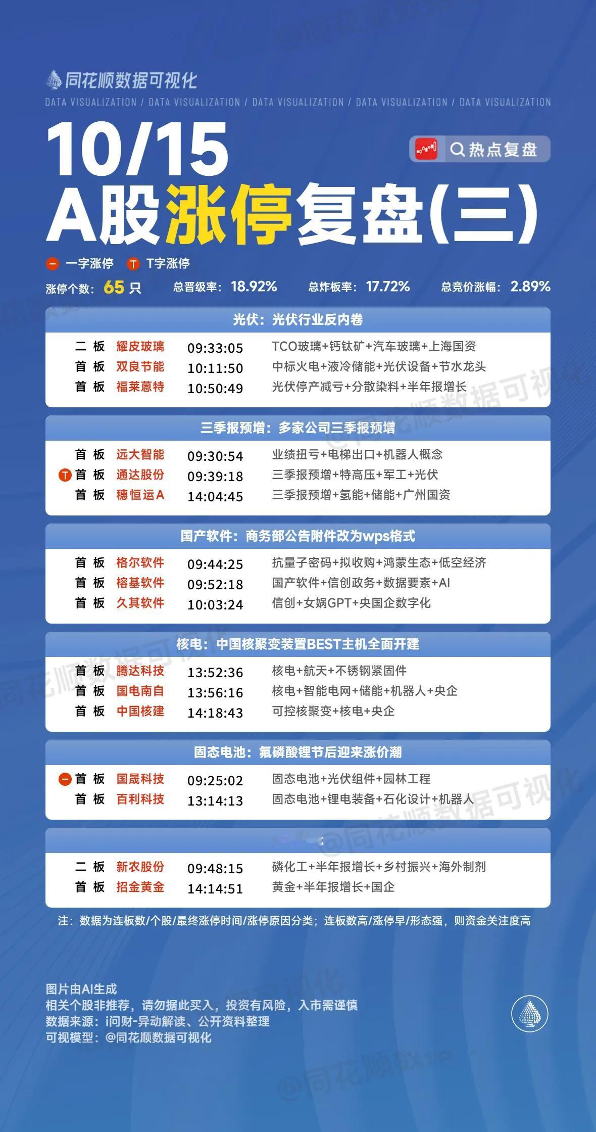 10月15日复盘:三花智控、中国核建、上海电力、闻泰科技、黄河旋风隔日走势的一些