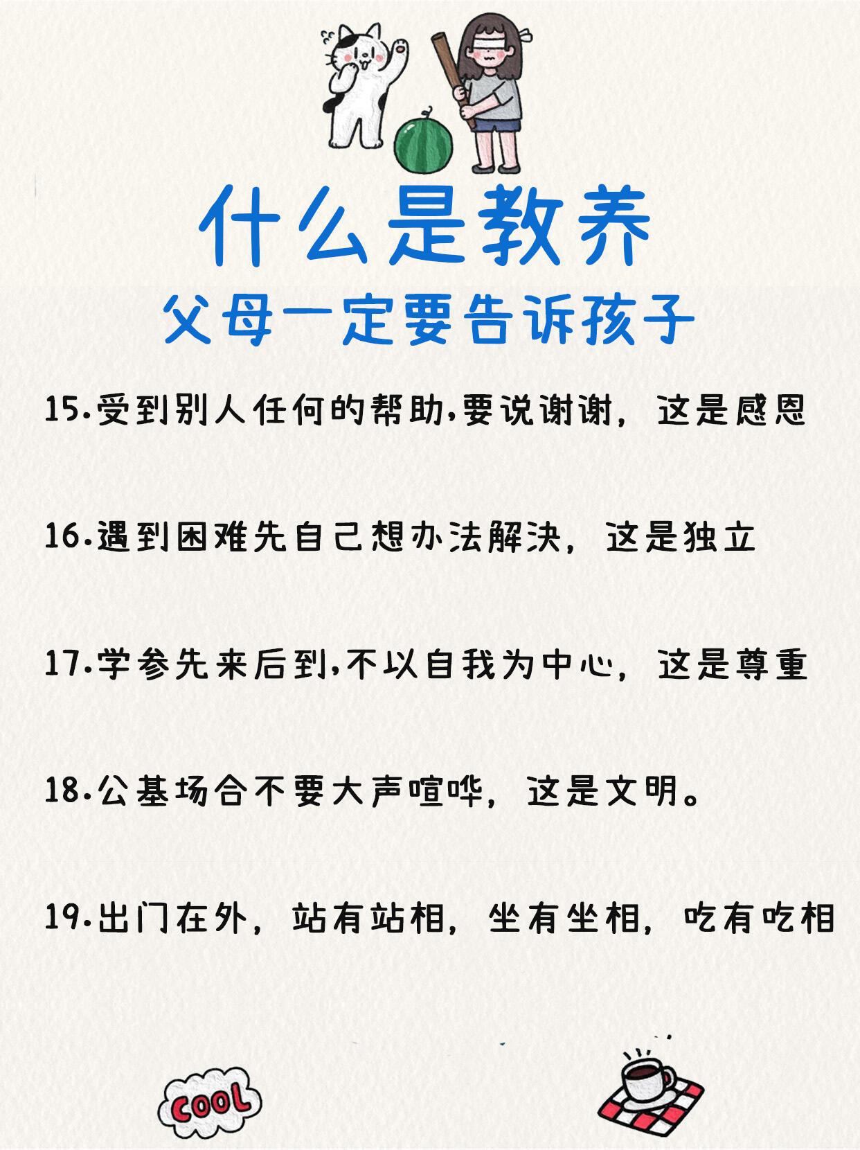 什么是教养?这是我见过一个最完美的答案,解释的非常详细清楚,父母一定要告诉孩子。