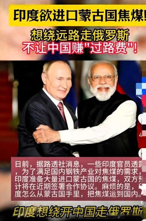 奇葩事件! 印度弃近路绕俄买蒙古煤,到底图啥? 10月14日,印度外交部发布消息称,印度、蒙古国和俄罗斯三方正在讨论通过俄罗斯路线进口蒙古国煤炭的可行性,并表示预计印度资助的蒙古国炼油厂将在2028年投产。 蒙古国有煤,但运不出。 印度缺煤,俄罗斯想赚运费,表面上看三方都有利益,但实际情况比较复杂。 就说这运输成本太高, 煤炭绕道远东港口再转船到印度,这个时间也太长了,印度电厂未必愿意承担每吨增加30美元的成本。 再说就是印度在蒙古国建炼油厂的必要性?最重要的是,这可能让美国不高兴。 印度与俄罗斯的合作关系一直很微妙,此时突然冒出一个蒙古国炼油厂,对美国来说难免会有些“恼火”。这一点也是最重要的一点,俄罗斯铁路冬季常常出问题,运输延误风险还是很大的。 这波合作正赶在建交70周年的节点上,印度不光送释迦牟尼弟子舍利去蒙古展览,还帮着建炼油厂,砸了近20亿美元贷款,图什么呢? 再说蒙古缺炼油能力一直靠进口,这厂2028年投产后,是否能满足它75%的成品油需求,这等于帮着掰断了对别人的依赖。 大概印度也是不白忙,蒙古的煤炭正好能解它电力短缺的燃眉之急,这买卖说白了就是“各取所需”,互相搭台吧了。 就印蒙这波操作充其量就是“各打各的算盘”,蒙古要的是能源自主,印度要的是资源和影响力,看似热络,实则都是为了自身利益盘算。 评两句 这又是送舍利又是建工厂,印蒙这波合作把“精神+利益”玩得明明白白,还是够精明的。 虽然说印度砸20亿换资源,蒙古得工厂求自主,我看这哪是帮忙,分明是互相借力。
