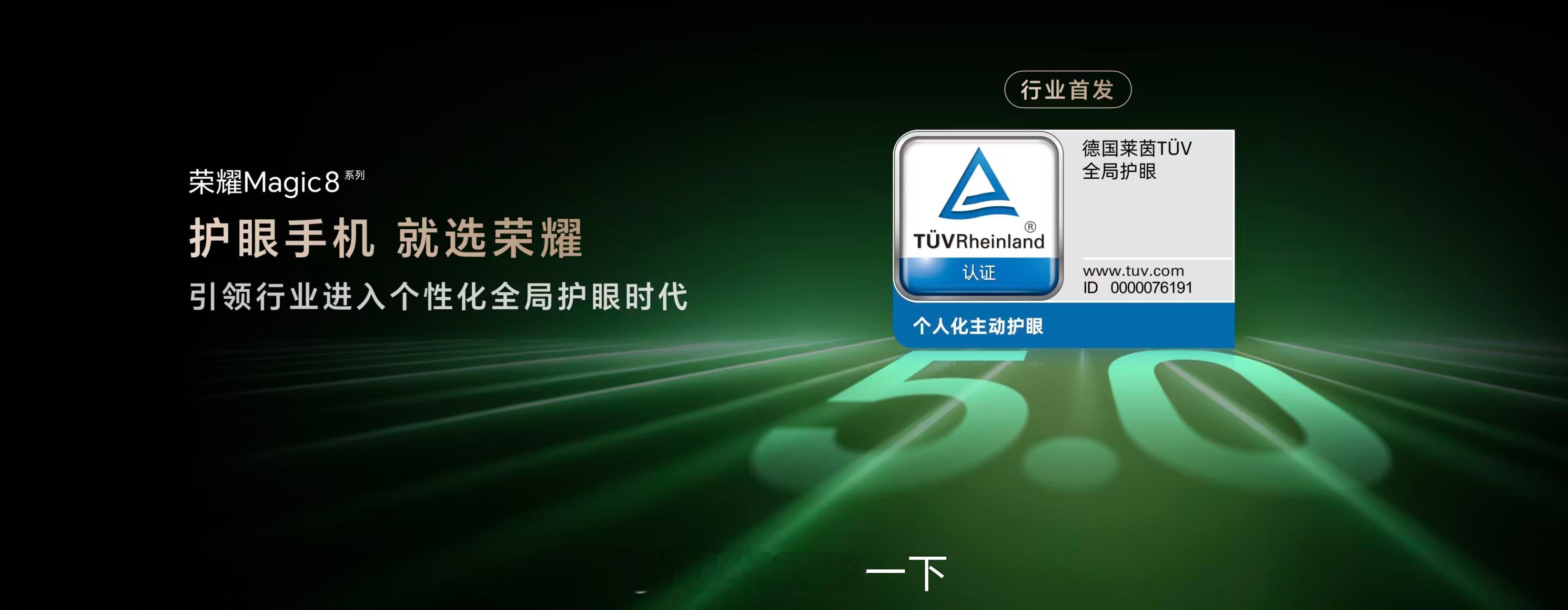 在护眼方面,荣耀Magic8系列更进一步,搭载全新绿洲护眼屏,峰值亮度高达6000nits,最低亮度低至1nit。