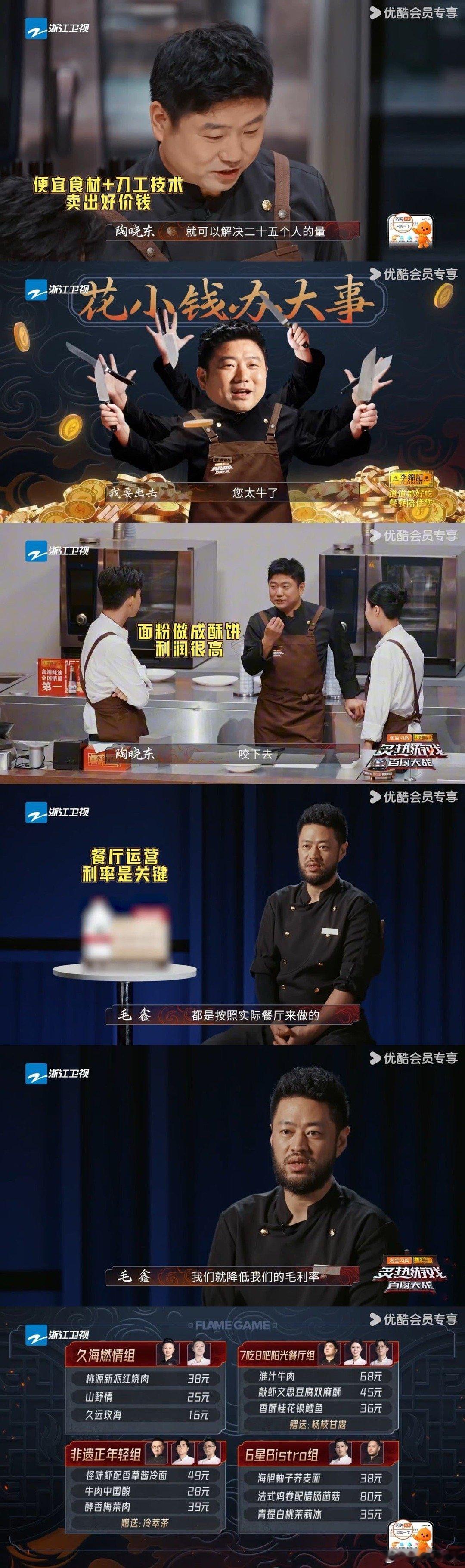 第一次见综艺还带教开店的看《炙热游戏百厨大战》像偷学开店秘籍!徐孝洪用数学公式控成本、毛鑫做高性价比米其林菜、秦卓男靠女性巧思赋能传统菜…真刀真枪的经营战,建议想开店的把综艺当“生存手册”啃!炙热游戏百厨大战