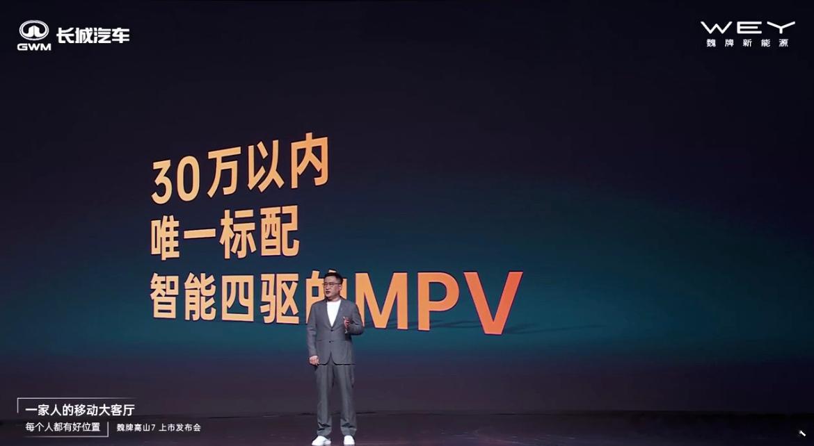 魏建军称服务用户没有完成时魏牌高山7正式上市 魏牌高山7正式发布,新车仅提供一个配置,标配即顶配。