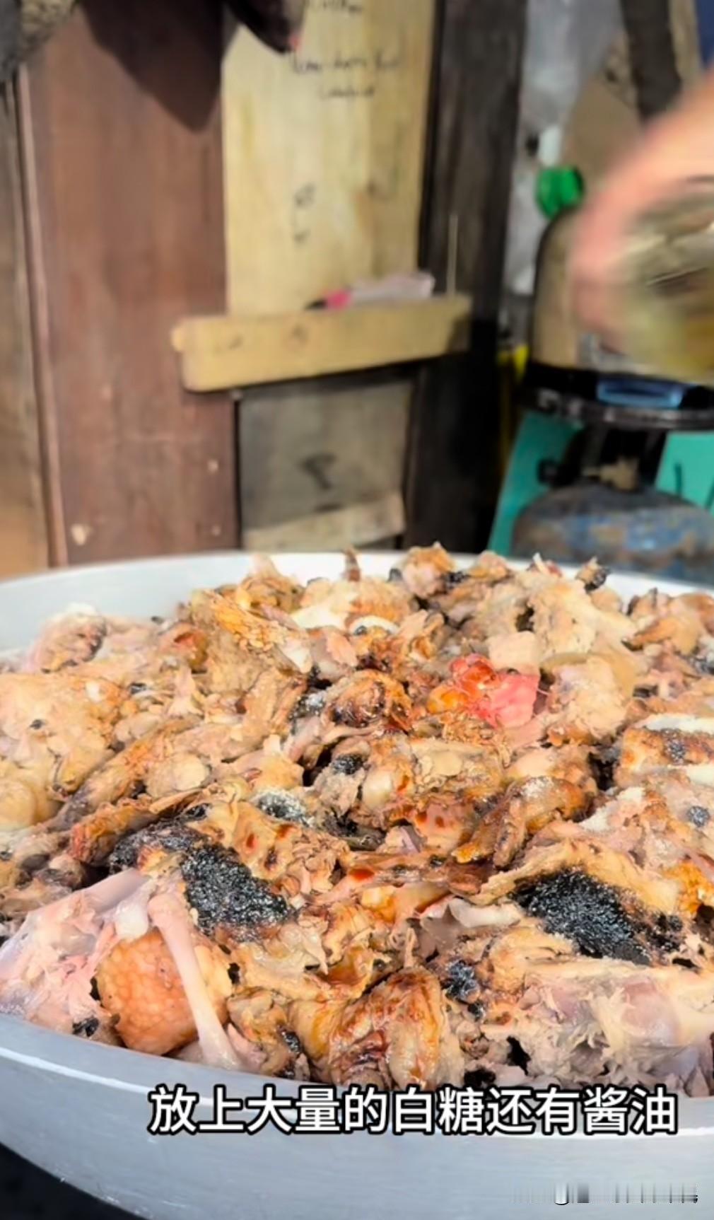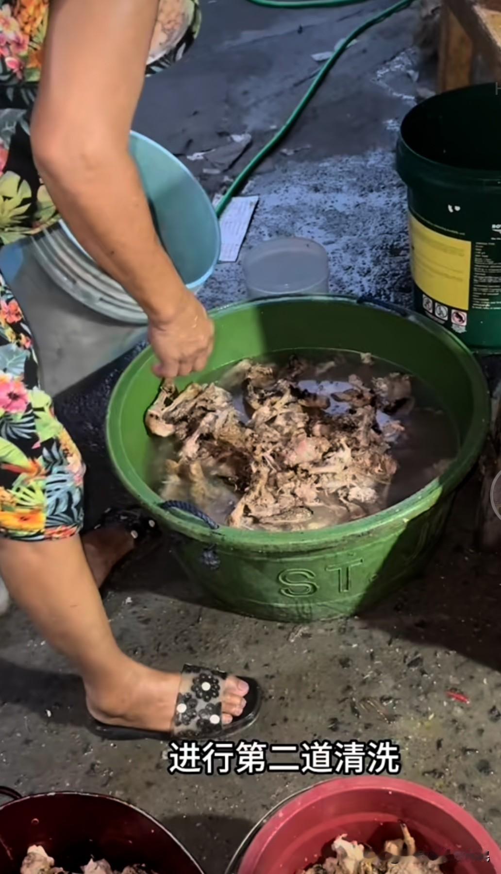 菲律宾二手炸鸡的制作过程 一、收来的被吃过的炸鸡清洗,把脏的剔除掉,一些小的杂物