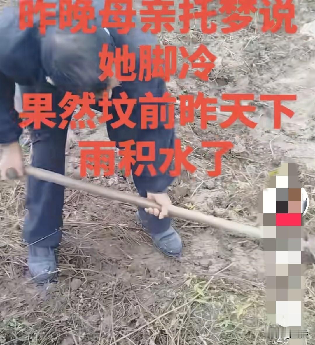 “家人们谁懂啊!安徽六安,一儿子做梦,梦见妈妈跟他说脚冷。第二天和爸爸去坟前一看,果然坟前排水沟被草堵了,妈妈脚下积了一滩水!网友:这是什么神仙母子情啊! 清晨吃好早餐后,这位儿子告诉了爸爸说,昨天我妈托梦说她冷,这让老父亲瞬间流下了眼泪。父子俩来到坟前后,果然看到坟前的排水沟被长出来的杂草堵住了。为了让妈妈晚上可以睡个好沉,父子俩忙活了两个小时。 有个网友说,他爸爸走了20年了,好多年没梦到过了,不知道是不是把他忘了。有个网友解释说,这是投胎转世了,缘分也就此结束了。 也有个网友说,那天梦见了自己的妈妈,她还是那么开朗,嗓门依然那么大,问他冷不冷,饿不饿,始终关心着自己。 第二天又下起了雨,这位儿子不放心,又去坟前查下有没有积水。 确实是这样,以前亲人在的时候不敢去有坟墓的地方,现在去亲人墓地一点也不会怕,感觉亲人就在里面。[祈祷][祈祷][祈祷]