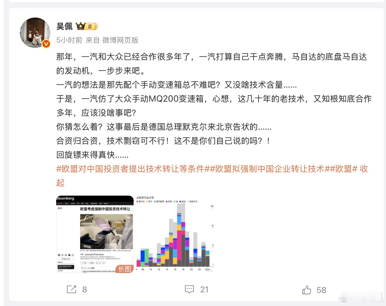 欧洲人哪能想到回旋镖来得这么快!欧盟对中国投资者提出技术转让等条件欧盟拟强制中国企业转让技术欧盟