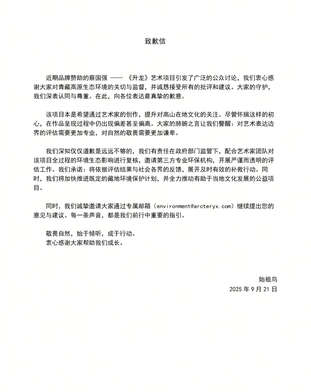 始祖鸟的惩罚终于来了! 官方通报“始祖鸟”品牌作为赞助商,依法承担相应损害赔偿和相关修复事宜 这次可不是一纸道歉信那么简单 因为蔡国强烟花秀事件,始祖鸟又被推到了风口浪尖,作为冲锋衣的高端品牌,有网友发现自从道歉信发出以后,他们的抖音官网已经没不更新了,旗舰店貌似也开始清仓,那这个价值几千上万的冲锋衣如今销量屈指可数,对比大伙说的线下门庭若市,人来人往,还是区别蛮大,这届网友果然“长记性”,说好抵制就一起行动了 作为赞助商,虽然不会把他的企业关停,但该承担的责任一点都不能少,草原的破坏,就在烟花喷发的一瞬之间,然而修复却需要很多年,始祖鸟也终于是为自己的行为买单了,品牌方这次的教训比惨痛了!法国始祖鸟 德国始祖鸟 始祖鸟羽绒服 澳洲始祖鸟 挪威始祖鸟 西安始祖鸟 始祖鸟吊牌