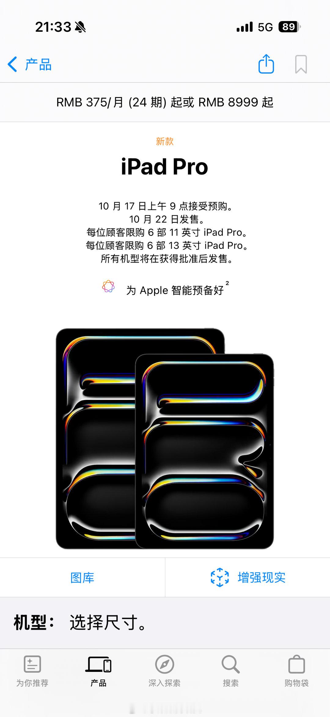 苹果刚刚上线了搭载M5芯片的iPad Pro和MacBook Pro,10月17日预售10月22日开售🙊