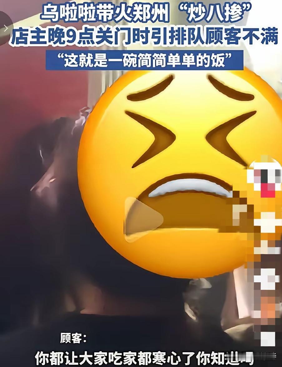 炒八掺的老板和顾客吵起来了。 原因是老板想要九点关门,可是还有很多排队的顾客没吃到。有顾客就不乐意了,冲着老板大喊,你们关门了,那我们这些没排上的怎么办? 老板娘就说了,我们都是九点关门。你们没排上,我们也没办法。有个女顾客就冲出来说老板这样做寒了顾客的心。 女顾客的话一出,老板娘也很委屈,已经一人限买两份了,所以本市的人就不要凑这个热闹了。其实这就是简简单单的一顿饭。 不得不说,现在大网红的号召力真厉害,人家开店几十年平平稳稳。就因为乌啦啦吃了,全国各地的人就都涌过去了。说实话,真是为了吃这一碗面吗?这里面有多少人是凑热闹的,又有多少人是为了流量去的,应该不在少数吧。 人家就是个夫妻店,两位老人也都70多岁了,每天还要买菜备货,体力和精力都有限。如果想去凑热闹的,还是放过两个老人吧! 对于这件事,你怎么看?