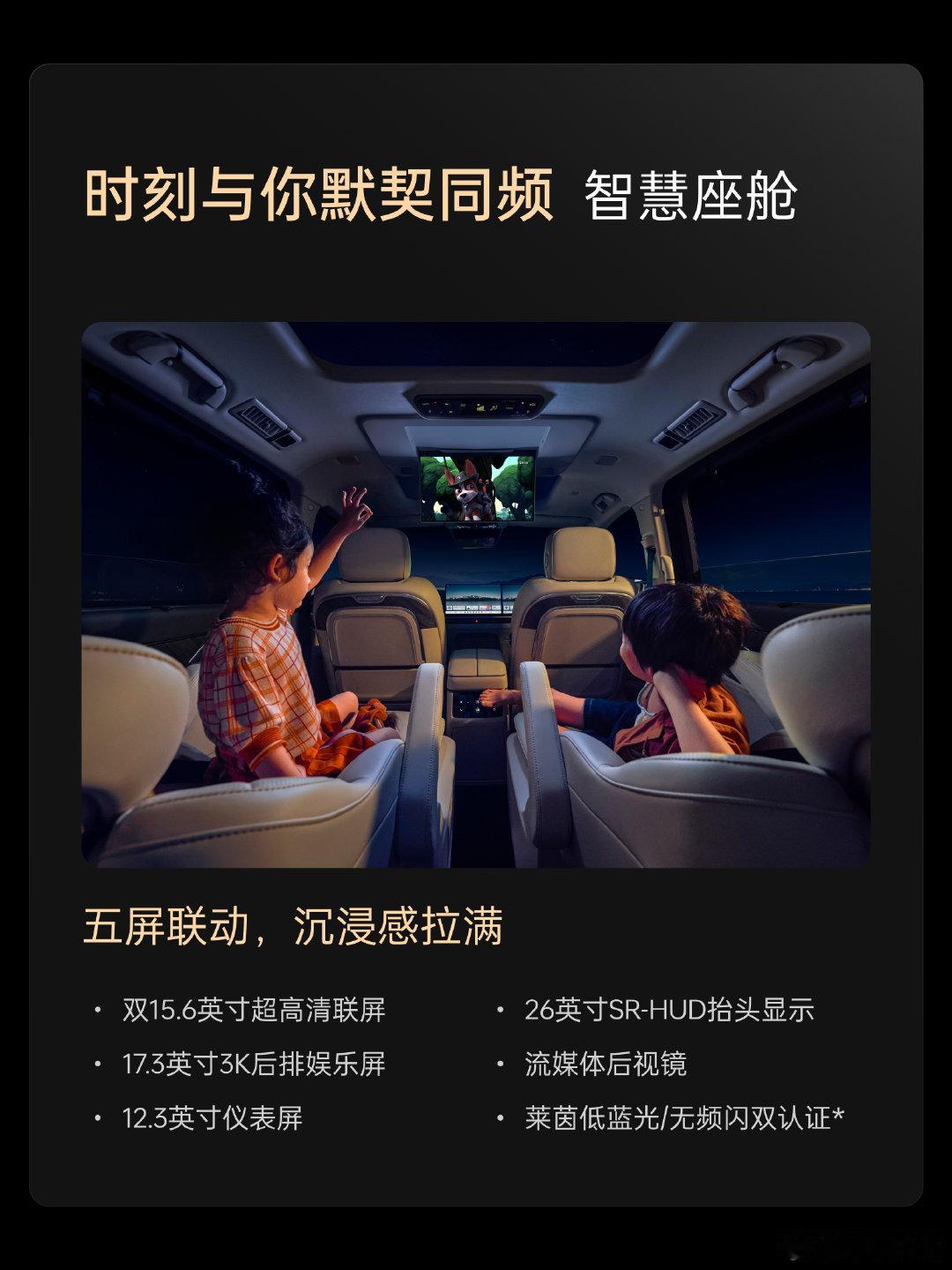 配置上,双15.6英寸中控屏+17.3英寸后排吸顶屏,搭高通8295芯片,支持多音区语音;标配激光雷达与27个传感器,无图高速/城区NOA、自动泊车(识别率96%)等全场景覆盖,还有12.5L大容量且三排可独立操作的配置。
