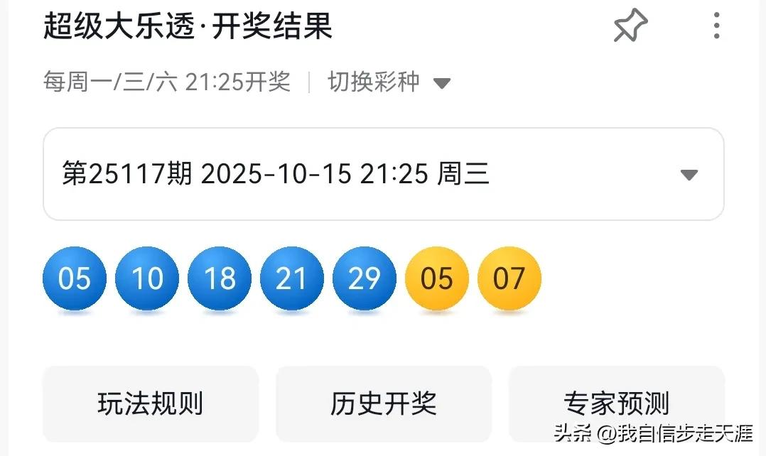 实力验证,如有神助! 本期大乐透开出0510182129+0507