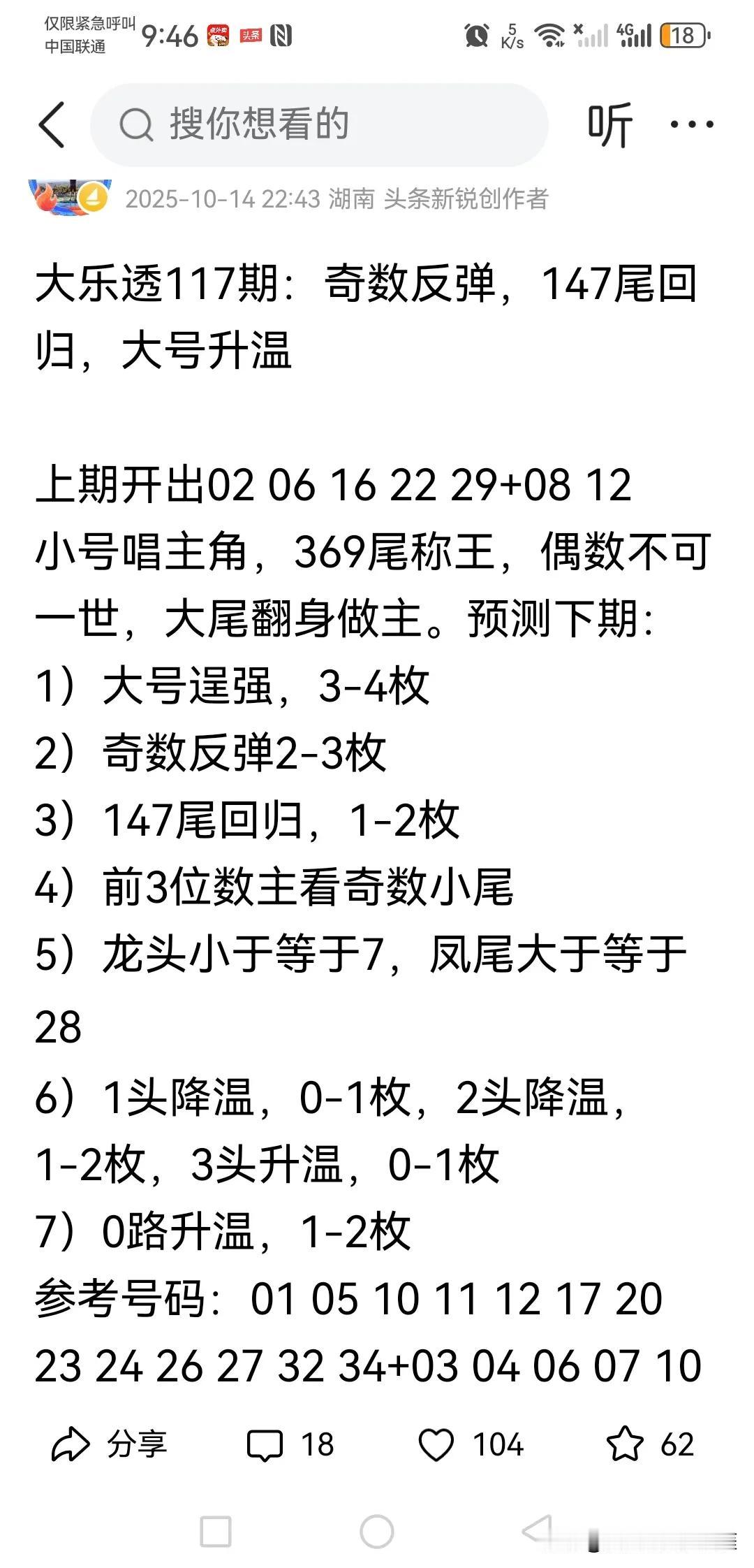 实力验证,如有神助! 本期大乐透开出 05 10 18 21 29+05 07 开奖结果基本符合预期(除了第4点以外),参考号中2+1。 搞预测,我是认真的![呲牙]