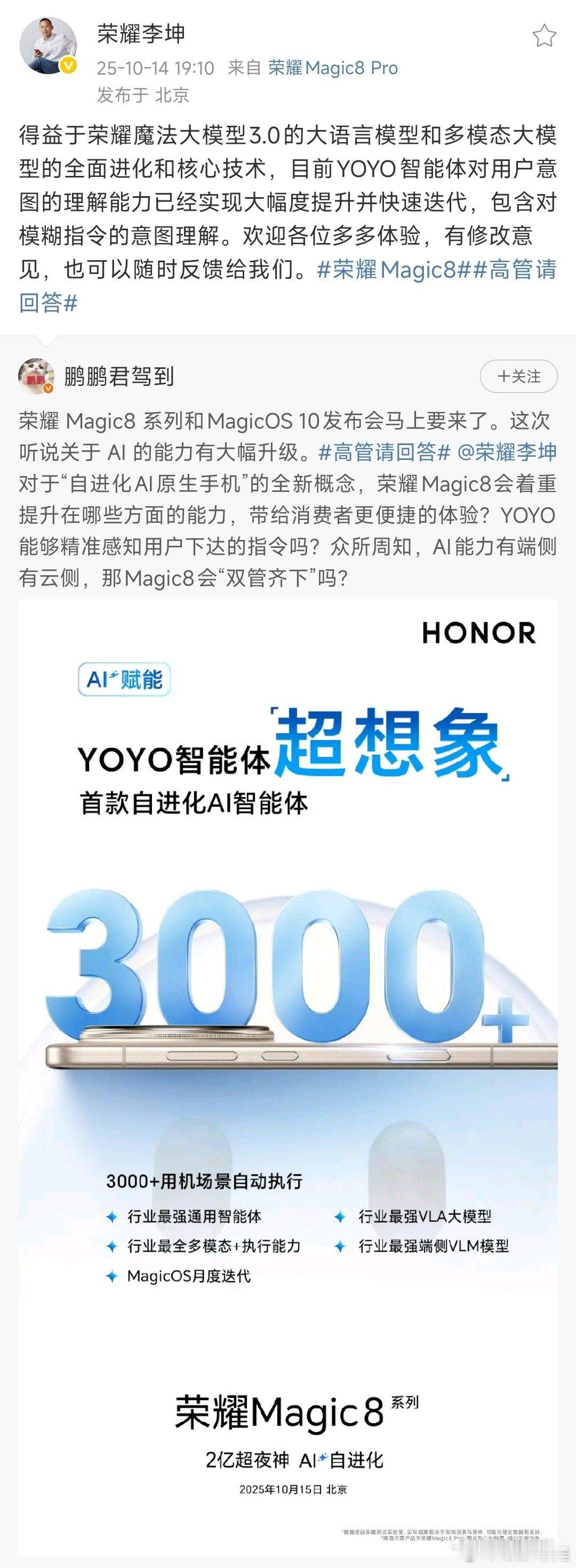 荣耀Magic8牙膏挤爆了买手机不能只看参数!荣耀Magic8系列的核心突破在于