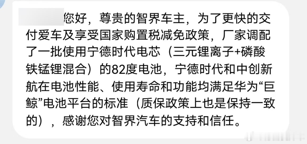 智界也开始通知部分用户做调配,原搭载中创新航三元锂电池包换成宁德时代三元锂+磷酸锰铁锂电池,这个方案你会选吗?[并不简单]