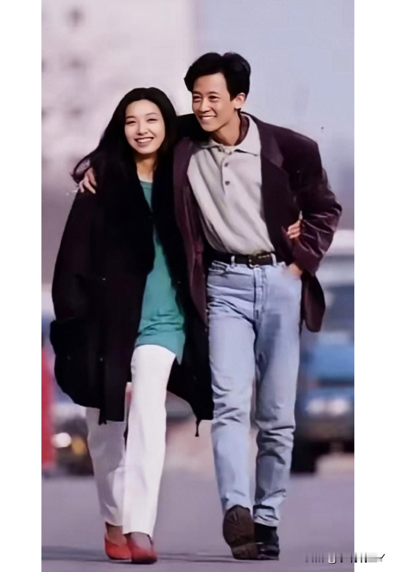 这是一九九四年,江珊与王志文在街道上的合影。那时候江珊二十七岁,美丽大方。王志文二十八岁,阳光帅气。那时候两人真的是非常般配!只可惜没有走到一起。