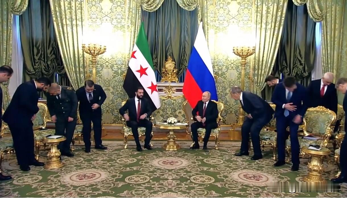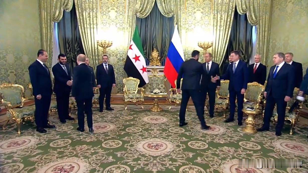 有人好奇,俄罗斯外长拉夫罗夫,在普京心目中,到底是一个什么样的地位, 通过这次朱拉尼访问俄罗斯的一些细节,可以让人们有一个清楚的了解。 这次朱拉尼访俄会谈现场,叙利亚方面出席了四个要员,而俄罗斯方面出席了六个,但是没有一字排开,而是分成了前后两排,每排都是三个人, 最前排最靠近普京的位置,就是俄外长拉夫罗夫的位置! 如果这个细节还不能说明什么, 那么接下来的一幕,足以证明拉夫罗夫在普京心中独一无二的地位, 双方领导人跟对方在场的成员握手环节,普京在跟叙利亚方面的四个人握手完毕,转过身来跟拉夫罗夫握了一下手, 难道跟自己人也要握手? 这只能说明普京跟拉夫罗夫握手, 已经成了一种习惯性动作, “老骥伏枥 志在千里”,握手不是目的,只是表达敬意和亲切的一种方式, 拉夫罗夫的外交风采历久弥坚,智慧与定力宛如外交场上的“常青树”, 岁月沉淀的不仅是他的银发,还有那些举重若轻的战略视野,拉夫罗夫真是堪称大国外交的活字典。