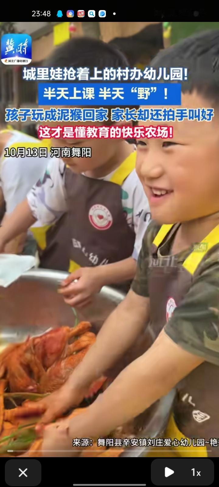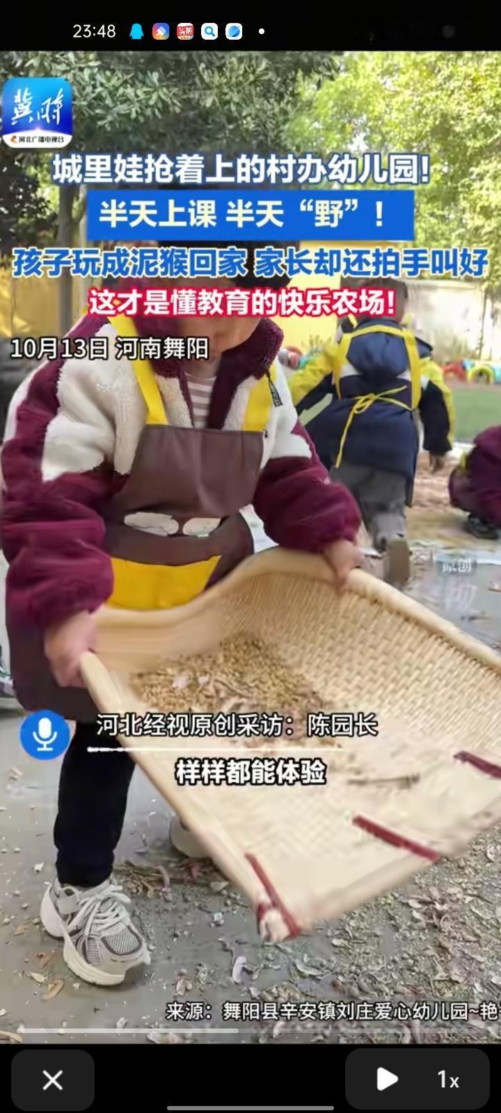 10月14日,漯河市舞阳县。新安镇刘庄爱心幼儿园开展“种田式”教学,孩子们干的有模有样,网友们也是纷纷点赞。幼儿园园长称,接收的学生基本上都是城里过来的,在这里,家长完全不用担心孩子哭着想家,孩子们玩的特别开心,顾不上哭闹,家长们特别的认可,孩子们动手的机会特别多。 这堂“种田课”既是有趣的劳动课,也是生动的自然课,它让孩子们在亲近土地的过程中理解了“一粥一饭当思来之不易”的道理。从孩子们专注地神情和卖力的模样中,不难看出他们对这堂“种田课”的喜爱,不少家长总害怕孩子磕着碰着,但也别忘了,尝试新鲜事物本来是孩子与生俱来的天性。