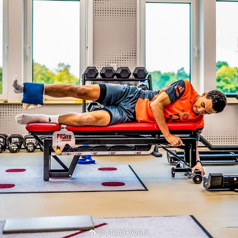 【伤筋动骨100天】7月初在世俱杯8强战,遭遇腓骨骨折重伤的拜仁中场穆夏拉(22岁),在受伤达到100天之后,正在全力进行康复锻炼,争取早日复出。