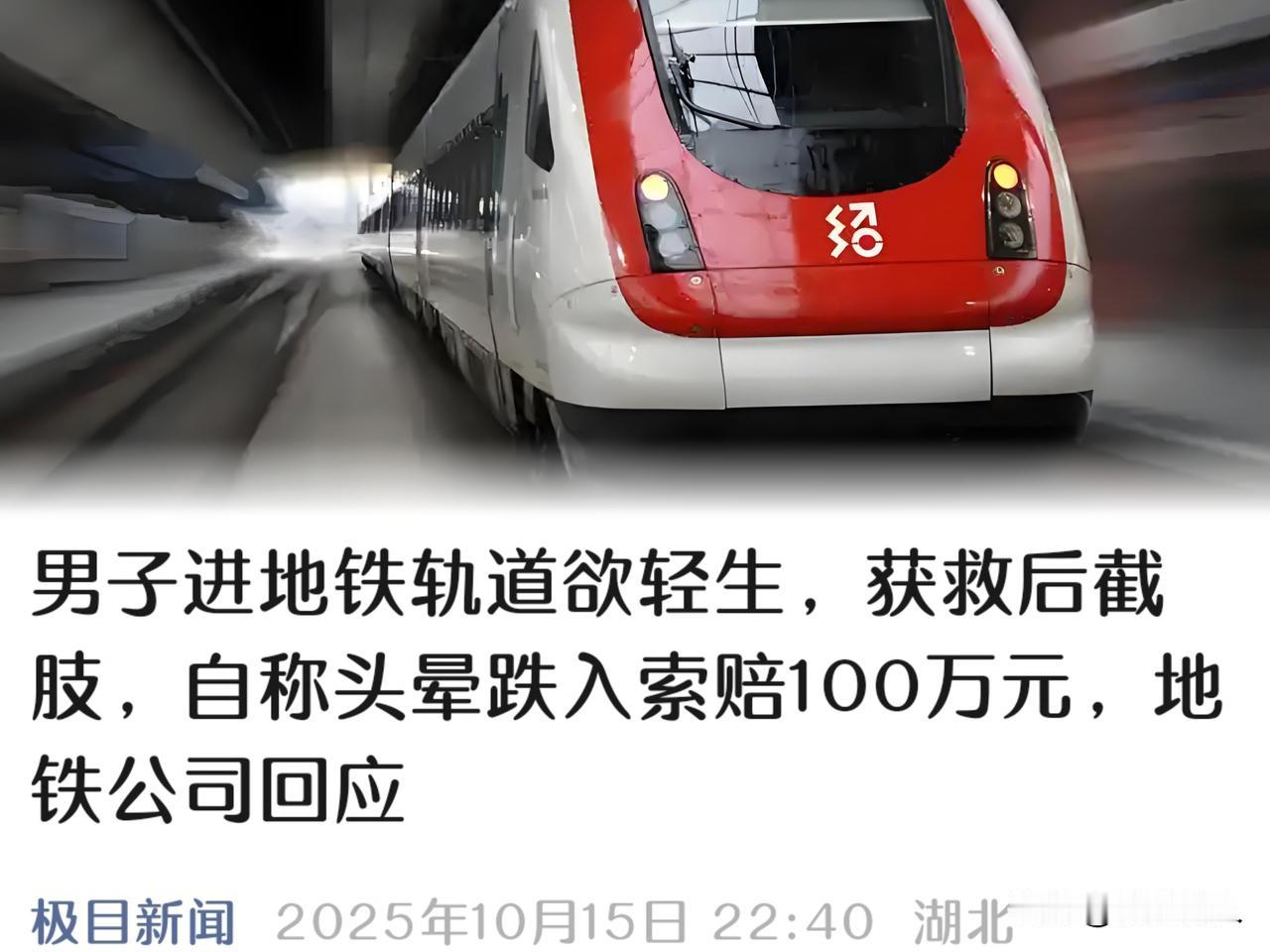 😱碰瓷见多了,碰瓷地铁,你见过吗? 6旬大爷轻生不成,惨遭截肢,企图碰瓷地铁运营方索赔100万+,法院查明实情:驳回索赔诉求! 👀大家看新闻了吗? 去年的3月份(2024年),年近60的赵某因自身原因轻生,来到上海3号线,卧倒在轨道上,被站务员发现后获救,但很不幸,命是救回来了,普法惨遭被截肢。 在获救后,赵某也在向帽子叔叔亲口说:“不要救我,救了我,叫我以后怎么活”等表明自己是轻生的话语。 🤔但事后不久,赵某却后悔了,改口称: “当时是晕倒滑入地铁轨道,地铁运营方没有尽到及时施救和保障自己安全,导致悲剧发生。” 然后,竟一纸诉状,要求地铁运营方赔偿100W+。 经法院查明实情后,判决→ “自杀未遂,驳回索赔诉求”。 🤔所以说,人生起起落落,谁没有点挫折?但面对人生起落挫折,应该直面困境,而不是走极端路线,否则,赵大爷的截肢,就是对后悔莫及、行差踏错的最好解析! 💡另一方面,也警戒着我们: 人,应该为自己的一切行为负责,不要有侥幸心理,企图让他人为自己的过错买单! (消息来源:极目新闻权威报道)