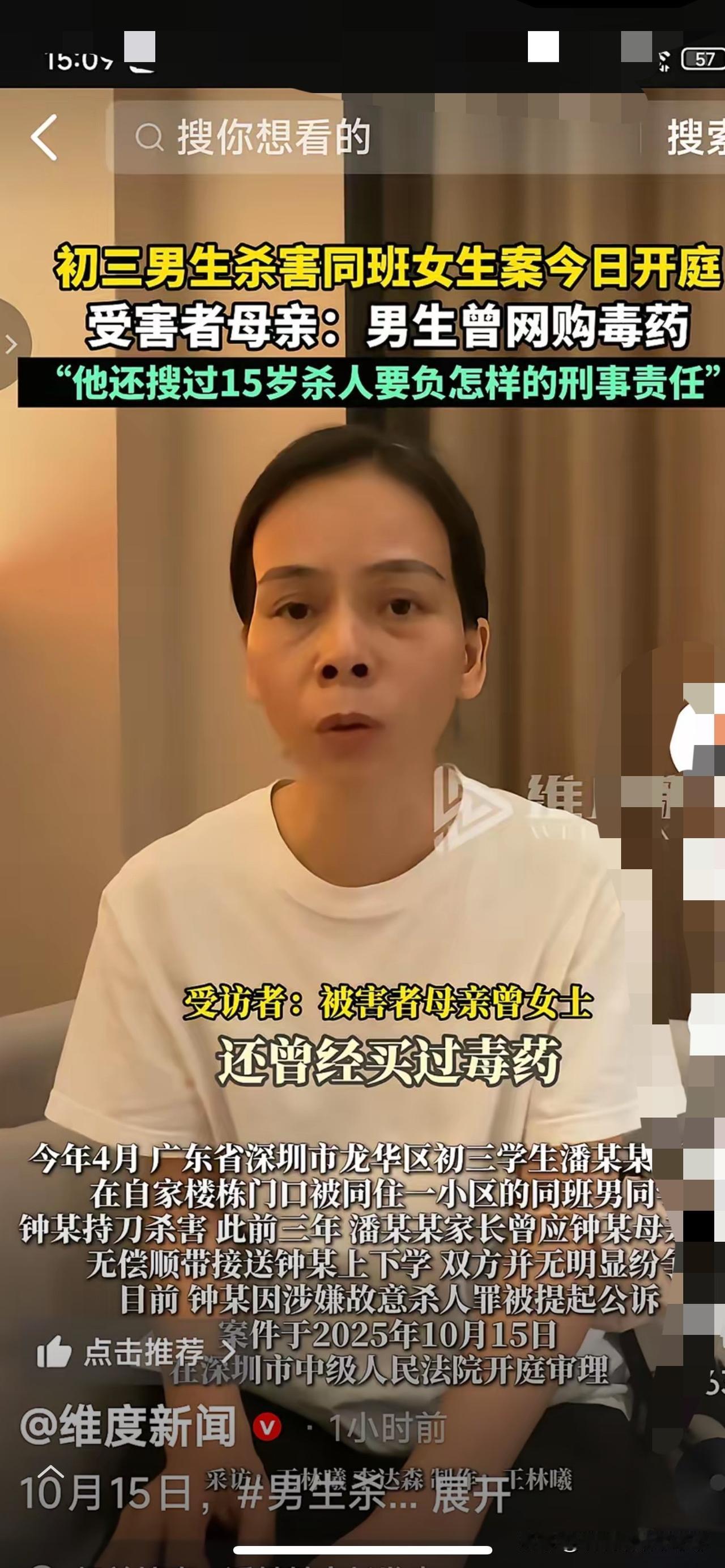 这就是生米恩斗米仇啊,帮邻居免费接送3年的男孩竟然杀死了自己女儿还连捅了26刀, 一个十五岁的男生和女孩是邻居又是同班同学、这样的帮助不但没有感恩,却换来一场噩梦血案, 因为嫉妒人家孩子学习好,环境好,利用放学后买的折叠刀捅伤女孩26刀致死,听到女孩呼喊救命还又回去进行补刀还谎称自己是见义勇为被坏人砍伤的双手, 就这样的行为,可以见到他的德行,这个妈妈一次次的面对镜头,真的希望通过舆论通过这种方式给女儿讨回一个公道,法律对这种极端的行为对他的惩戒达到极限,甚至突破极限 十五岁恶魔不该留在人间!就这个手机搜索15岁犯罪要负什么刑责一条,就把当年的立法者永远钉上历史的耻辱柱,不管多少岁,故意杀人就应该死刑,放出来会祸害社会。无法想象是怎样的父母养出这么残忍、变态的恶魔 甚至希望的他的父母也死刑,既然父母是第一监护人,未成年不能判的刑罚就应该是监护人其中一个承担。因为这种恩将仇报的恶魔就不应该活着!