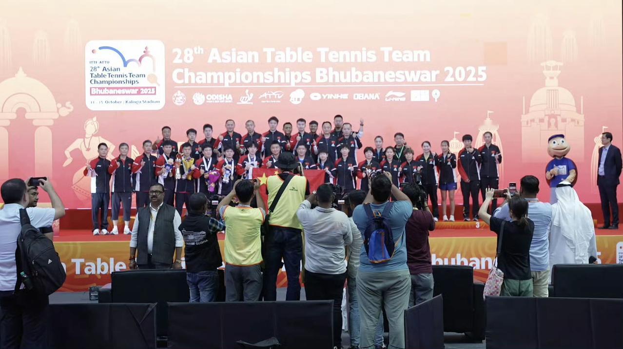 包揽男团、女团冠军的国乒大合照[笑哭]! 包揽印度亚锦赛男团、女团冠军的国乒选手