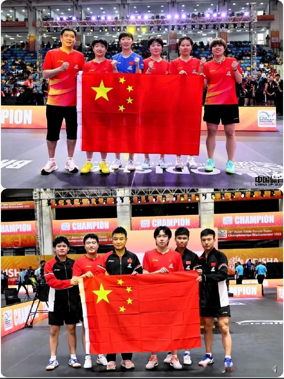 国乒亚锦赛又双叒叕包揽啦![赞][赞] 昨晚看亚锦赛颁奖仪式, 眼泪差点掉下来! 两面五星红旗同时升起,国乒男团女团双双夺冠,这场面也太燃了吧! 女队“五朵金花”在邱贻可教练带领下真的太飒了!领奖台上五个姑娘举着国旗笑成一团,那种发自内心的快乐,隔着屏幕都能感受到~ 男队决赛看得我手心直冒汗!好在王皓教练带着小伙子们顶住了压力。最后赢下来的时候,王导那个笑容太治愈了,老父亲般的欣慰啊! 还有幕后英雄周启豪、向鹏,虽然没上场,但奖牌也有他们的一份功劳!这种团结一心的团队精神,正是咱国乒最牛的地方! 不得不说,你永远可以相信中国乒乓球队!每次看他们比赛,都能感受到那种“必胜”的信念。这就是王者之师的底气吧!