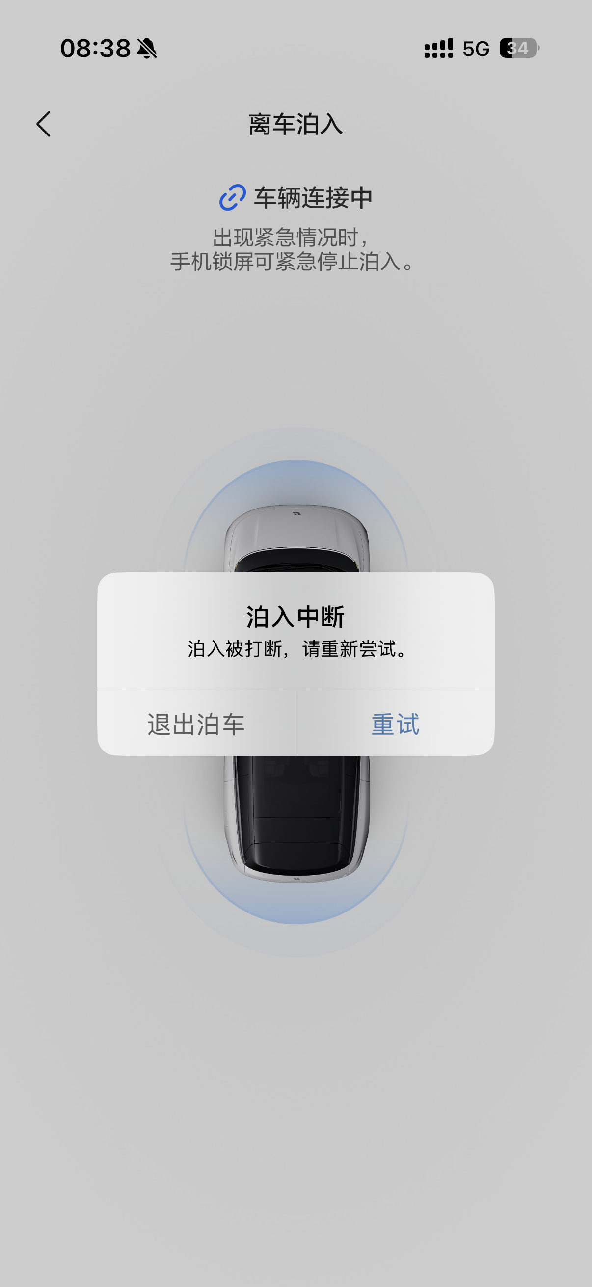 我以为点了泊车就ok,于是当它开始泊车后我看了一眼界面,就锁屏坐电梯去了。