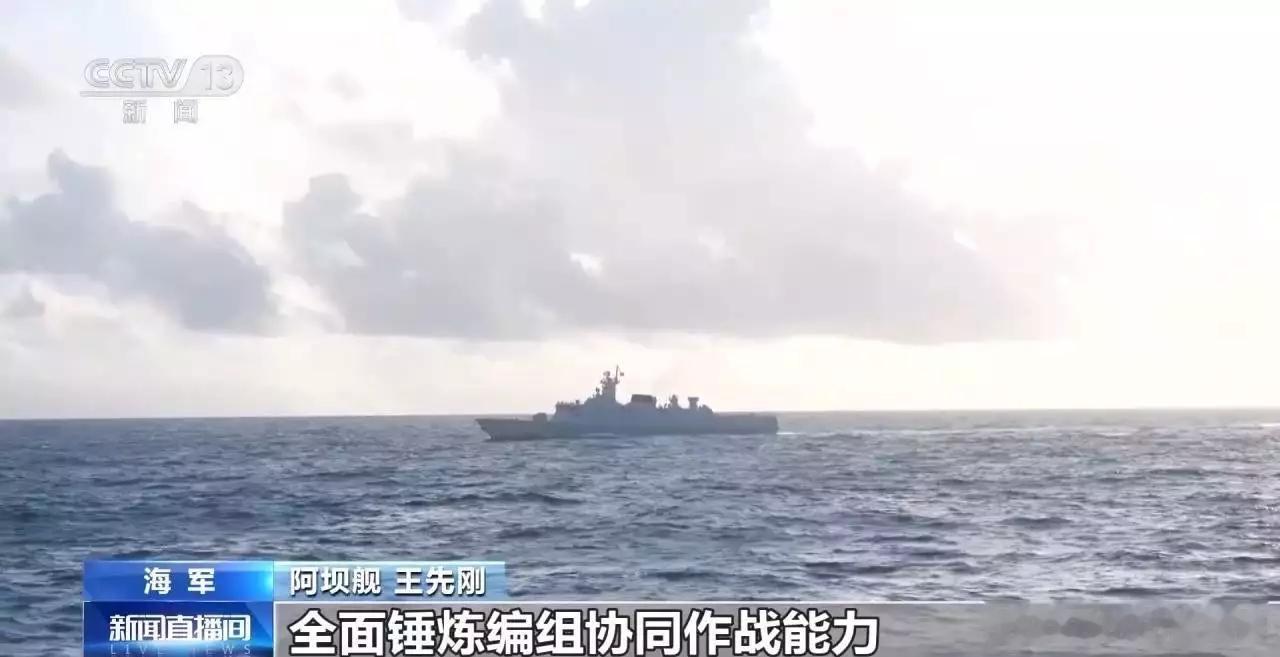 近日,海军广安舰、阿坝舰组成舰艇编队位南海某海域开展多课目实战化训练。