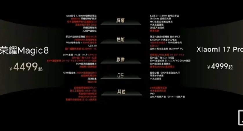 荣耀Magic8终于发布了吊打友商,4499的价格你能接受吗? 骁龙8五代芯片,对比是苹果17和小米17,从游戏性能,拍照体验,照片美化,续航比他们多两小时,发热管控也是同级别最好,跑分同级别300多万,荣耀8 4百多万跑分,荣耀手机专注研发手机,考虑护眼,考虑了使用手感等等,可以说今年最优选择。