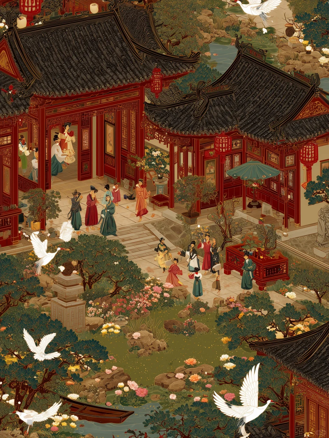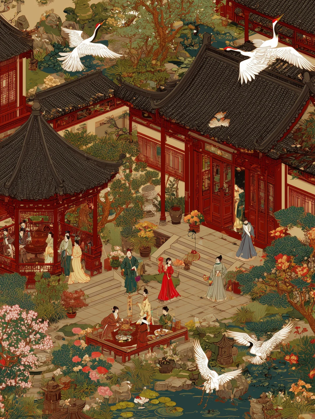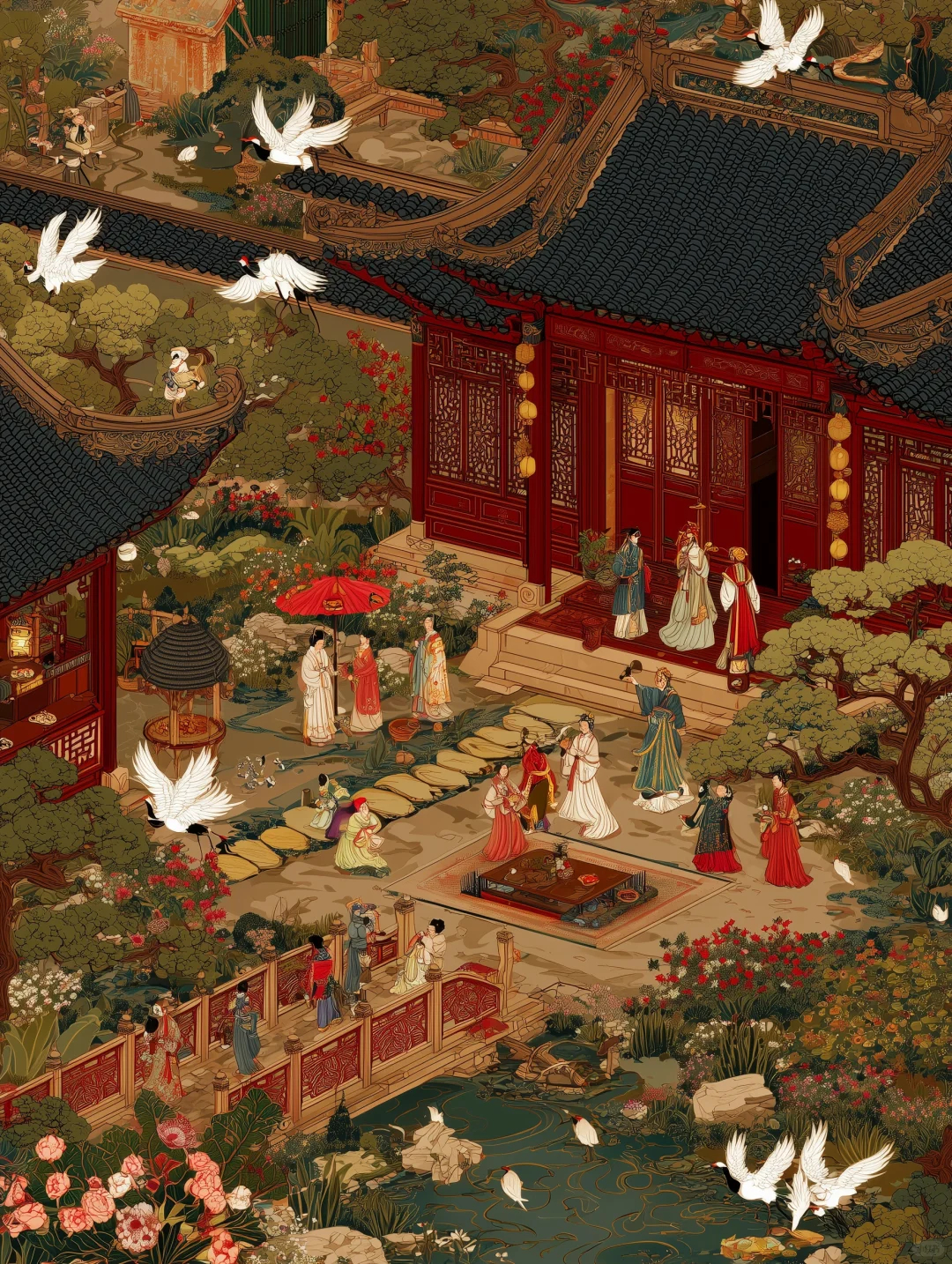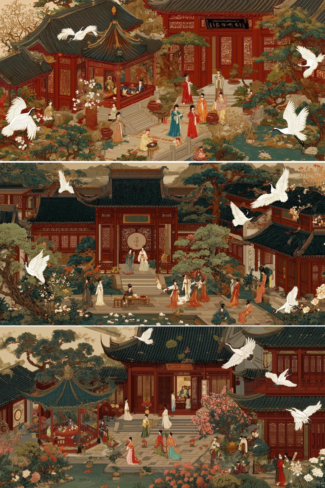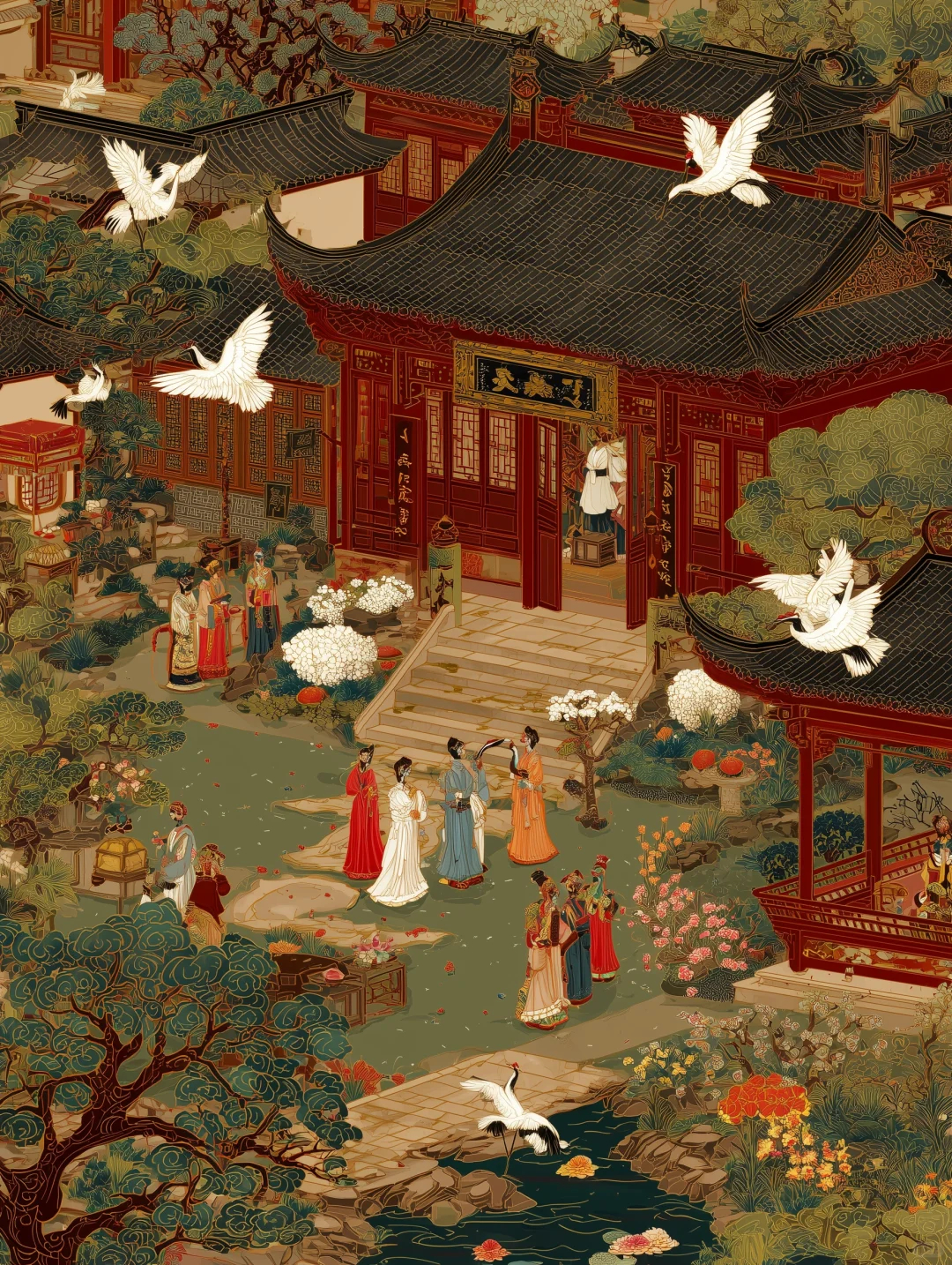 霓裳舞罢倚花眠,玉箫吹彻,惊起白鹤翩跹。(AI生成)