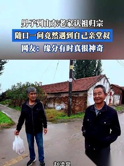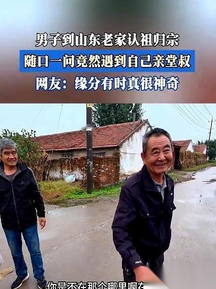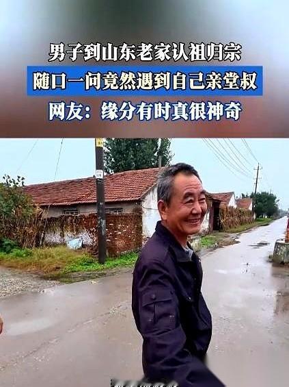 真的,有些事比电影编的还巧。 一个大哥,带着老婆孩子,从浙江开了八百多公里车去山东寻根。 在村口两眼一抹黑,随便找了个插着兜的大爷问路:“大爷,这村儿是不是都姓赵?” 大爷说是。 大哥又试探着,报出了自己爷爷的名字。 你猜怎么着? 对面大爷愣了一下,直接伸出手来,一句“我是你叔叔啊!”,把大哥当场干懵了。 这哪是运气好,这就是刻在中国人骨子里的东西。 一个名字,就是一个活的GPS。 当年爷爷19岁,为了解放战争离家,为了大家,舍了小家,这一走,就隔断了几十年的音讯。 但血脉这玩意儿,它断不了。 它就像一个看不见的雷达,一个说了就能对上的暗号。 我们现在天天用手机导航,能去世界上任何一个角落。 可心里那个“家”的坐标呢? 有时候,它就藏在长辈们反复念叨的一个名字、一个村庄里。 看到他叔叔让他儿子赶紧叫“爷爷”那一幕,真的一下子就破防了。 什么陌生、什么隔阂,瞬间就没了。血缘这东西,就是这么不讲道理的温暖。 人这一辈子,可以走得很远,但千万别忘了自己是从哪儿来的。 这才是我们最大的底气。