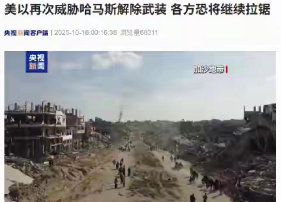 演不下去了?“只要我一声令下”就恢复在加沙的战斗,川普又开始威胁哈马斯了 一觉醒来,关于加沙,又起波澜,这次川普又亲自下场称,“只要他一声令下”,以色列就恢复在加沙的战斗…… 怎么看呢? 先下个结论吧,演不下去了,我真替川普汗颜。 为什么这么说呢? 首先,他为了内塔真的很拼,先是搞了一个自称中东3000来从未有过的和平协议,占据舆论高点。 告诉世人,喏,你看,我又促成了一个地区的和平,就像时代周刊发文的那样,“他胜利了”…… 然而,真的胜利了吗? 其次,来自中东及西方的媒体消息显示,有川普斡旋的第一阶段和平协议生效后,以军对加沙发动36次袭击,造成7人死亡。 在这种情况下,哈马斯,或者加沙人不反击? 而现实却是,川普要求哈马斯放下武器,解除武装。 这不是搞笑吗? 明明是以军没有听从美方停火协议,却怪哈马斯没放下枪。 退一步说,如果川普真能命令以军,会出现以军违反停火协议吗? 答案是否定的,因此,我替川普汗颜。 纵然你为内塔很拼,但,以军打你的脸也很响,难道不考虑体面吗? 要我说,做不到的事儿不要着急开腔,否则只能让人看到更多的笑话。 至于对哈马斯的威胁,这就是演不下去的表现。 我的观点是,停火协议达成后,他们走上街头那一刻起,就说明他们想以另一种形式存在,绝对不是放下武器,这种威胁毫无意义,只会让脆弱的和平协议化为泡影。