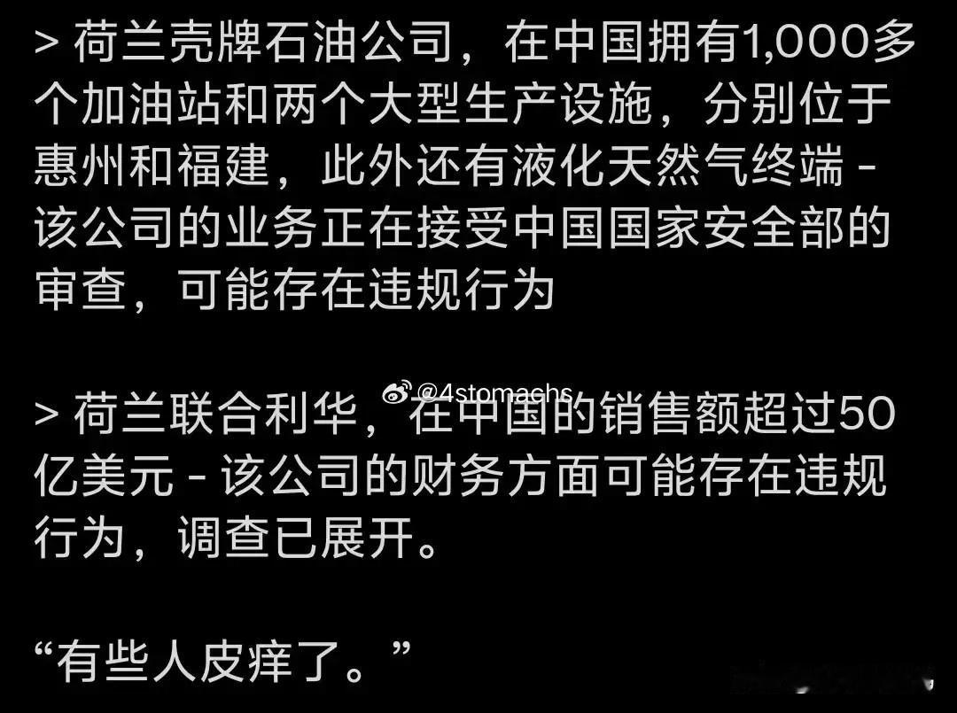 荷兰在中国有壳牌石油,联合利华还有飞利浦,礼尚往来就是了,看谁更疼