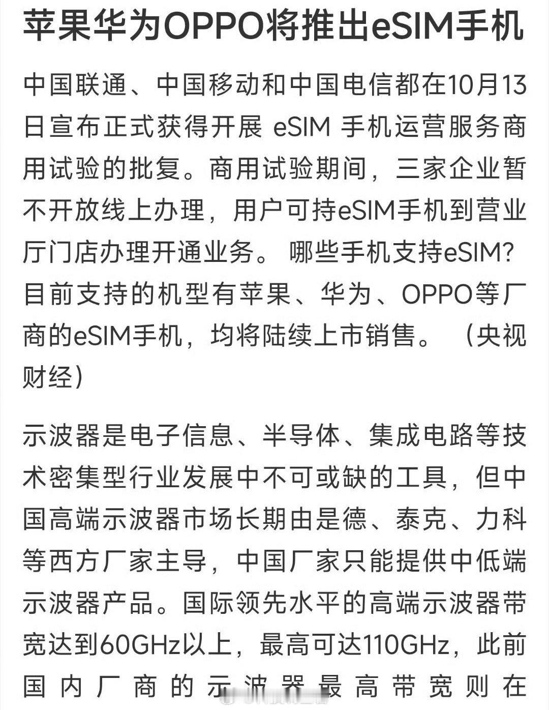 苹果华为OPPO将推出eSIM手机汽车不要线下去上牌了,手机进入无卡时代,都是利好消息~