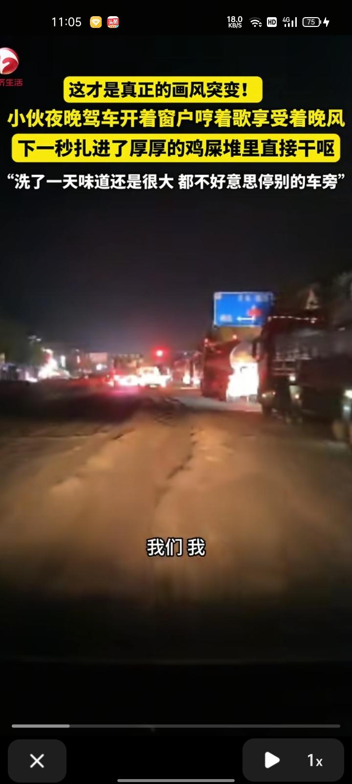 10月14日,临沂市沂水县。小伙夜晚驾车,开着窗户唱着歌享受晚风,下一秒扎进厚厚的鸡屎堆里直接干呕。当事人卢先生表示,这些鸡屎可能是一辆大车撒落下来的,第二天经过的时候已经清理干净。“洗了一天味道还是很大,都不好意思停别的车旁。”