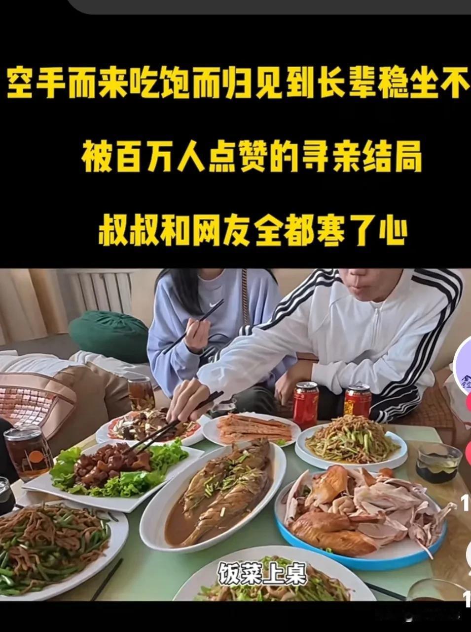 被网友骂惨了,浙江百万网红寻亲后续,看了完整版,博主太让人失望了,一家人太没礼节了! 百万网红带老婆孩子山东寻亲,被叔叔一家热情款待,走的时候又吃又拿! 有网友说,这一家子家教有很大问题! 第一,堂叔带回家后就应该去村里超市买点东西,而不是无动于衷,两手空空! 第二,其他长辈过来了,起码要站起来招呼下,而博主的老婆孩子坐沙发上纹丝不动! 第三,家人都没落座,没到齐,怎么他老婆孩子先动筷子吃上了! 还有网友说,博主带着老婆儿子到附近旅行,才想着回去寻亲。即不带礼品,一进村一家子就指指点点的说人家的苞米是喂猪的,问人也不称呼,被叔叔认下后,让孩子叫爷爷也不叫,老婆也不言语,进家了,见到婶子也不叫人,老婆孩子竟然还说人家是乱认的,整得好像她家好高贵人家攀她家亲似的!(既没礼数,也没礼貌) 人家主人还没有上桌,他老婆孩子就已经吃上了,去长辈家还空手,坐着和长辈打招呼。 那确定了后,也认门了,去村里超市买点东西很难吗? 他媳妇和他儿子一个称呼都不喊,神态和行为都透漏着瞧不起,嫌弃,好像他们很高贵似的!这不是没教养是啥?小时候老师教的尊老没学过?