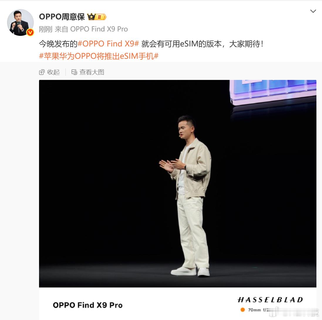 Find X9有eSIM版本??OPPOFindX9旅拍神器发布 苹果华为OPPO将推出eSIM手机