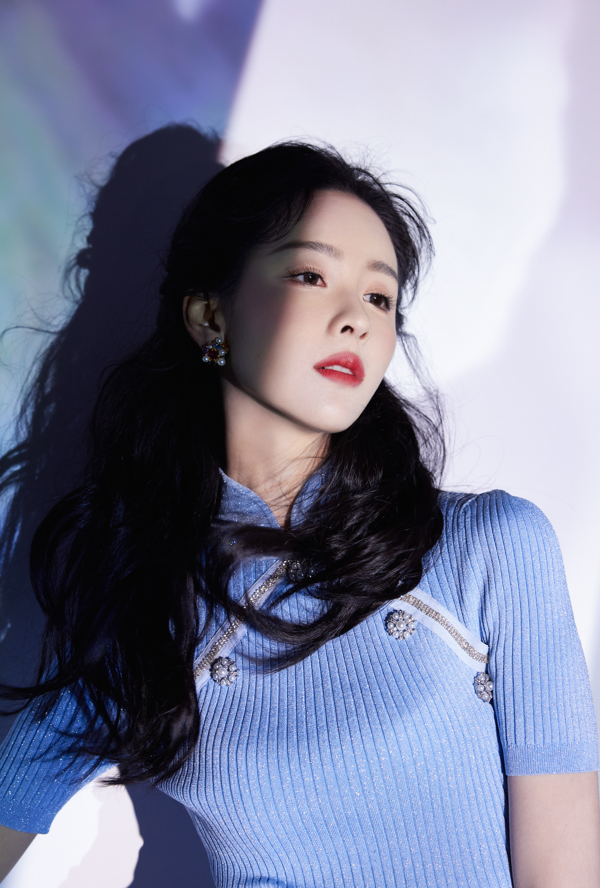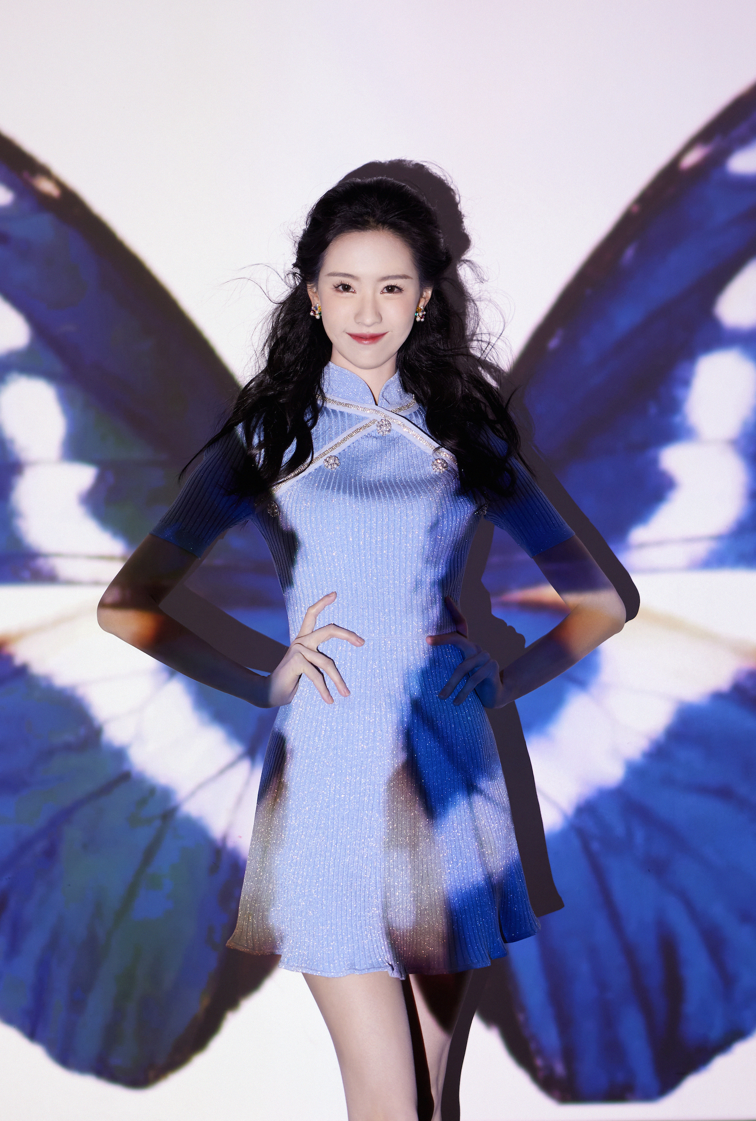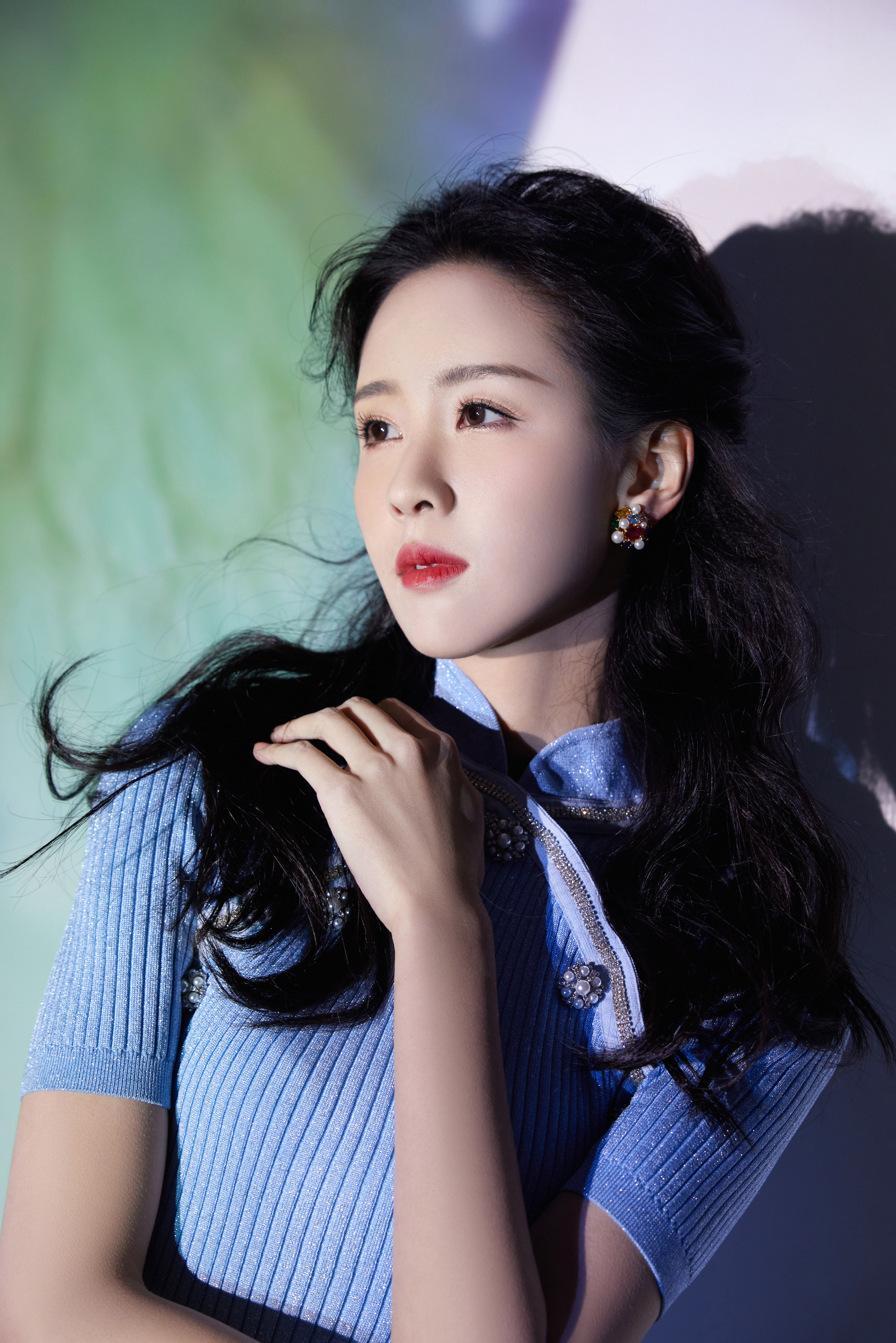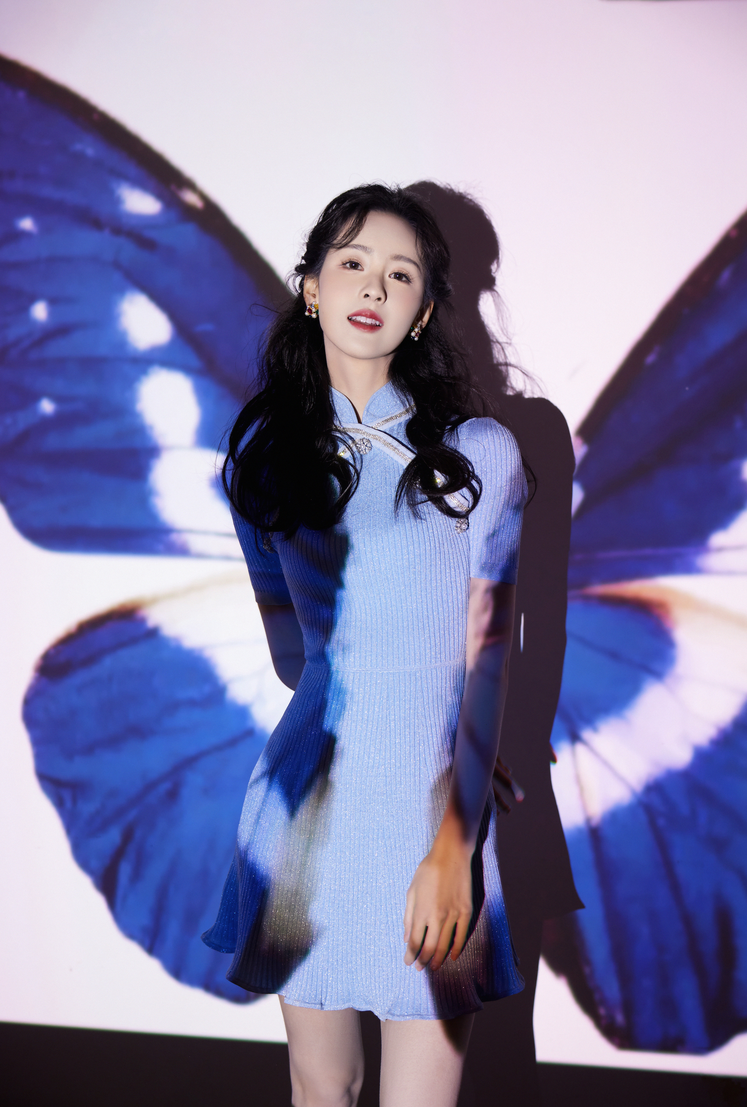 卢昱晓韩系妆造,绿色V领吊带连衣裙,清新怡人 [求关注][拜托]