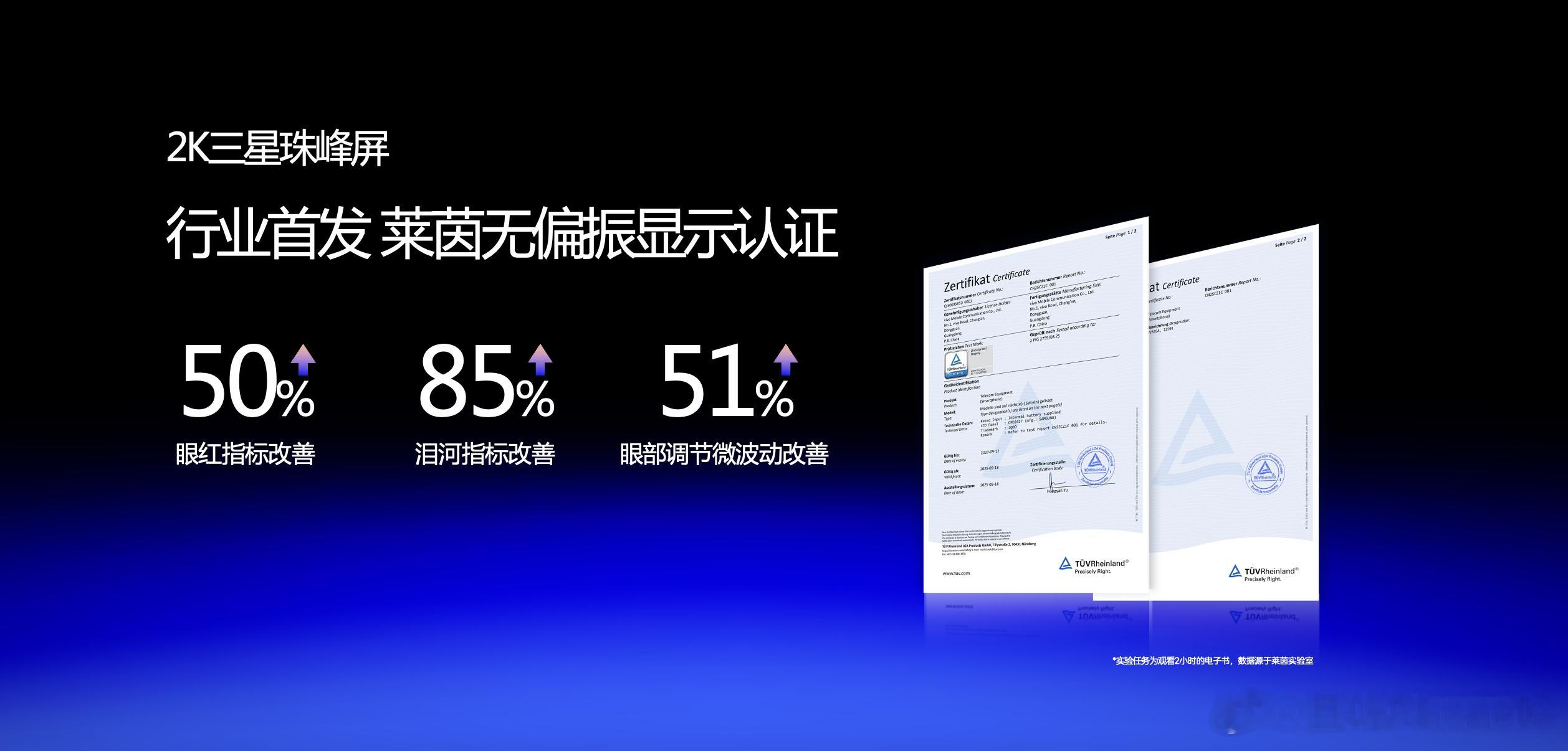 莱茵无偏振显示认证,硬件1nit,不同使用场景有不同策略,暗光护眼,玩游戏也能智能调蓝光。