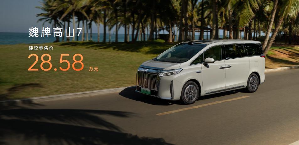 魏牌高山7正式上市,28.58万元起,新车定位中大型智能MPV,延续高山家族的豪华基因,以更灵巧的车身、更灵活的驾控和更丰富的配置,满足年轻家庭出行需求。
