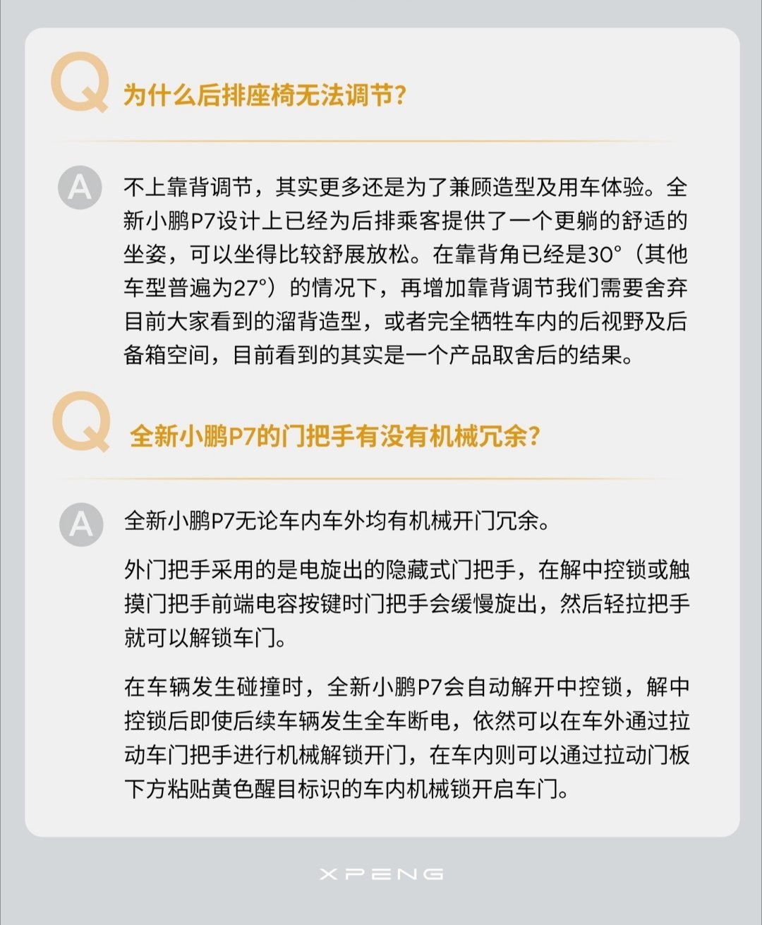 全新小鹏 P7“门把手有没有机械冗余?”问答详情如下: