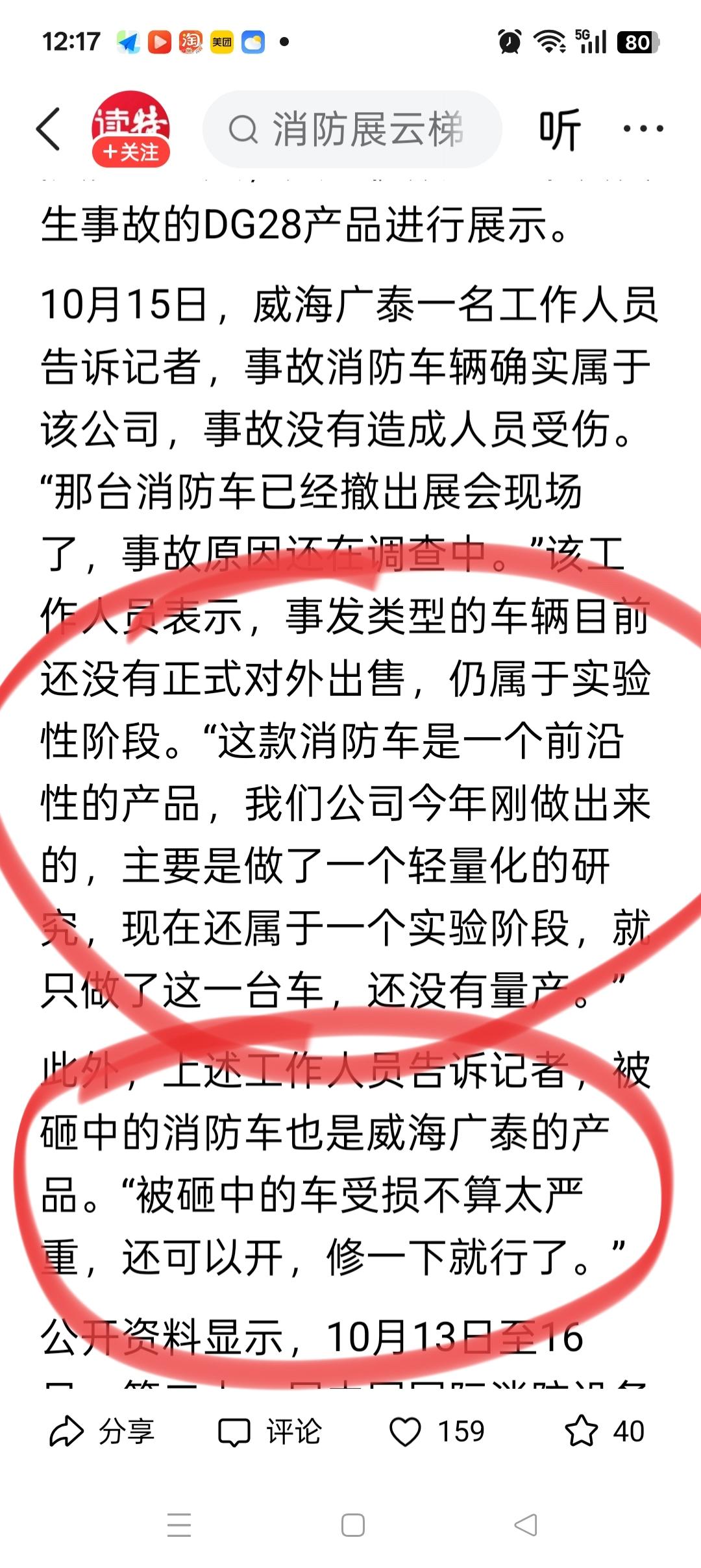 这下闹笑话了, 全国都知道了! 没想到,前天的消防展会上,一辆登高平台的消防车,