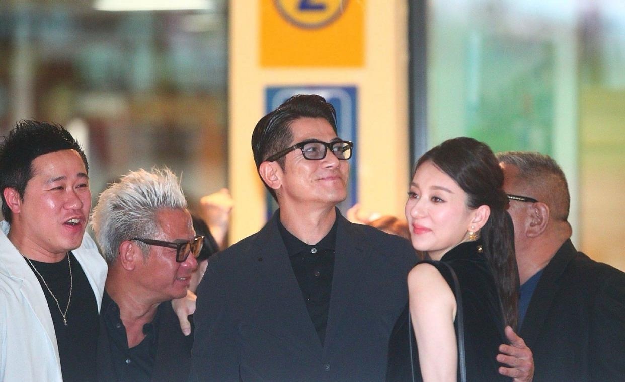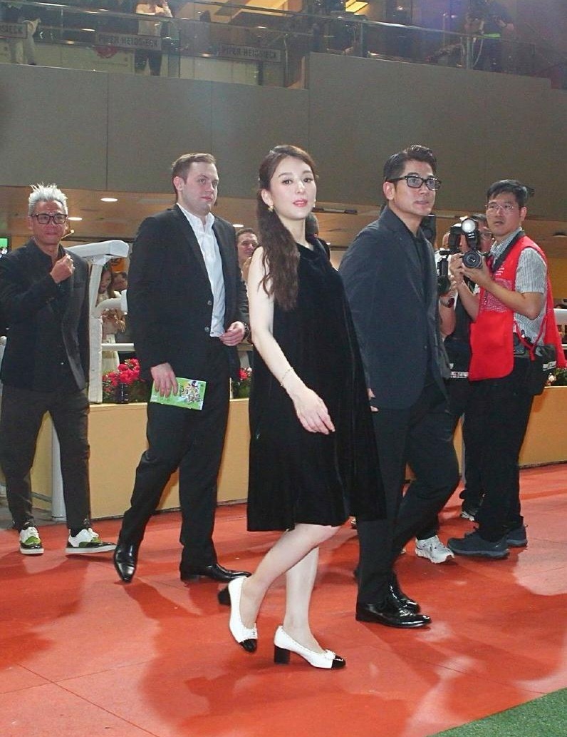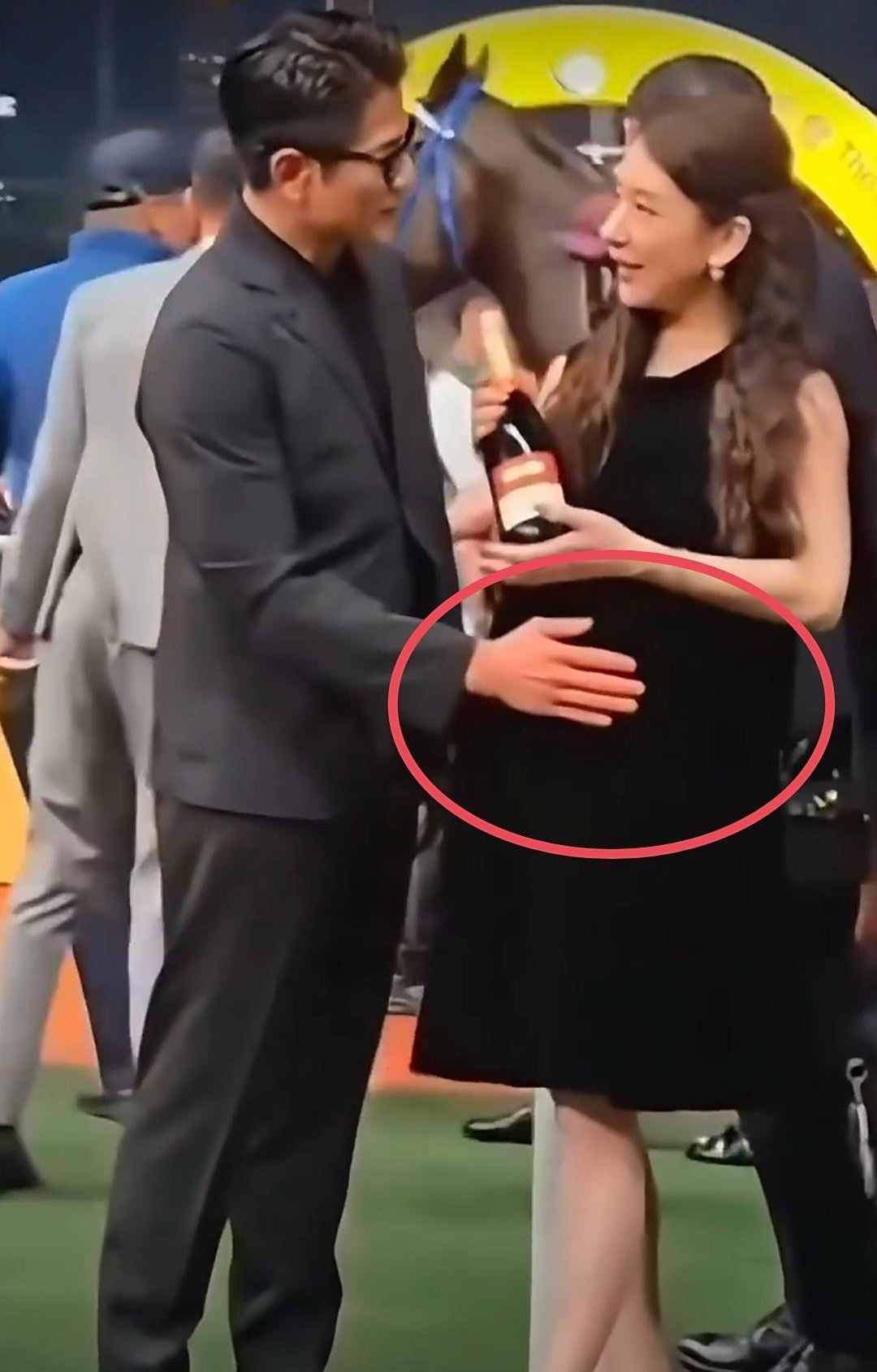 看来是真的还没生,郭富城和老婆方媛一起出席赛马活动,他用手抚摸女方的孕肚,眼神里都是宠溺。夫妻俩还手挽手走路,看起来好恩爱。