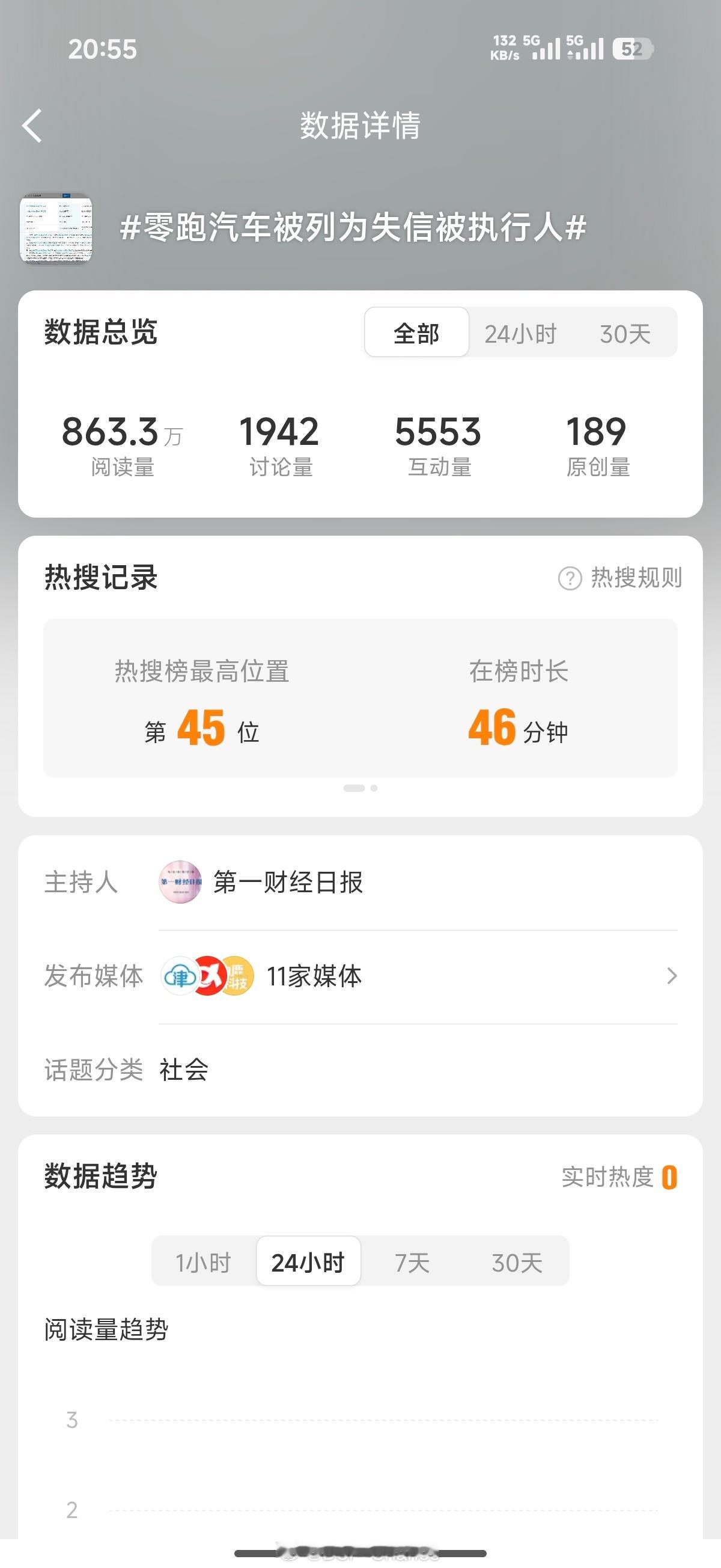 我查询了近期零跑汽车唯一的黑热搜,话题主持人是「第一财经日报」,发布媒体里面还有一些熟悉的身影。