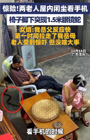 头皮发麻!广东一老人在屋内玩手机,突然感觉身后有动静,他以为是老鼠,结果回头一看,竟然看到一条1米多长的眼镜蛇,不知什么时候悄悄窜进来了,他吓得立马跳起来,提醒老伴离开,所幸蛇没有咬人,网友:蛇什么时候才冬眠? 10月,广东茂名山区的树林里退去,陈老伯家老宅的白炽灯就亮了起来。 72岁的陈老伯和老伴挨着屋门的塑料凳坐,两人头凑在一起,盯着陈老伯手里的手机。 屏幕里正放着邻里发的乡村趣事,老伴还时不时用手指点一下屏幕。 就在陈老伯笑着要念视频里的台词时,脚边忽然传来一阵极轻的“沙沙”声。 他起初以为是风吹动了地上的塑料袋,低头扫了一眼,却猛地僵住了。 塑料凳腿之间,一条灰褐色的蛇身正慢慢展开,粗得快赶上家里的竹筷,分叉的信子在昏黄的灯光下闪着微光。 而最前头那扁平的蛇头,一看就是电视里反复提醒过的眼镜蛇。 “妈呀!蛇!”陈老伯的声音瞬间变调,手里的手机“啪”地砸在腿上。 他顾不上捡,猛地从凳子上弹起来,伸手就拽住老伴的胳膊往后拉。 老伴还没反应过来,就被他拉着退到了墙角,“快别动!凳子底下有眼镜蛇!” 老伴顺着他的目光看去,原本松弛的肩膀瞬间绷紧,手紧紧攥着陈老伯的袖子,指节都泛了白,后背很快就被冷汗浸湿,连呼吸都放轻了。 屋里的动静没一会儿就传到了隔壁。 女婿小李正在院子里收拾农具,听见岳父的喊声带着慌劲儿,心里一紧。 山里蛇多,他早听老人说过夜里有蛇爬进院子的事。 他立马抄起墙根两根晒得干透的竹棍,棍子一头还留着新鲜的竹节,握在手里正好防滑。 他攥着另一头,脚步放得又轻又快,推门冲了进去。 一进门,小李就看见那条眼镜蛇正盘在塑料凳下,脑袋微微抬着,信子吐得又快又急,身子还慢慢往墙角的柴火堆挪。 小李压低声音喊道,让两人往后退,怕嗓门大了惊着蛇,手里的竹棍轻轻敲了敲地面,发出“笃笃”的轻响。 既让蛇注意到他的存在,又不敢太用力刺激它。 蛇似乎被竹棍的动静惊扰,停住了往柴火堆钻的动作,脑袋转了转,对着小李的方向。 小李屏住呼吸,把一根竹棍轻轻放在蛇的侧面,挡住它往屋里躲的路。 另一根棍则慢慢往门口方向挪,每挪一下,就用棍尖轻轻碰一下地面,引导蛇往亮着光的门口走。 陈老伯在一旁盯着蛇的动向,手紧紧护着老伴的肩膀,眼睛都不敢眨,小李,要是它往你那边动,你就先退!别硬来! 蛇走得慢,一会儿往左绕,一会儿又想往回缩,小李耐着性子,跟着蛇的节奏调整竹棍的位置,时不时用棍尖挡一下它往柴火堆去的路。 门缝透进来的晚风带着凉意,小李的额头却冒了汗,直到蛇的尾巴终于滑出了屋门,钻进了门外的草丛里,他才松了口气,赶紧把大门轻轻关上。 他又在门口等了一会儿,蹲下来看了看门缝,确认蛇没再回来。 才转身对还在喘气的两位老人说没事了,已经赶去后山那边了,没伤着它,您俩别慌了。 事后收拾屋子时,陈老伯蹲在后门边,才发现门框因为年久变形,底下空出了两指宽的缝。 他和小李翻出家里的旧棉絮,又找了宽胶带,把后门缝塞得严严实实,连窗户框边的小缝也用纸条堵上了,柴火堆也搬到了院子角落,离屋子远远的。 不少人看了这事都纳闷,都10月了,眼看要入冬,怎么蛇还这么活跃? 从事蛇类生态研究的教授表示:蛇是变温动物,体温全靠环境温度调节,一般得气温持续降到10℃以下,它们才会找个干燥的洞穴蜷起来冬眠。 而广东10月的白天,气温常常能稳定在20℃左右,这个温度对蛇来说,既不冷也不热,正好是能四处活动、找食物的好时候。 加上山区老宅周围草木茂盛,灌木丛里藏着不少蛇的猎物,晚上屋里亮灯,又会招来飞蛾、甲虫这些小虫子,蛇跟着虫子的踪迹找上门,也就不奇怪了。 这些事也给山区居民提了醒,防蛇其实不用太复杂,关键在细节。 像陈老伯家那样的门缝、窗缝,用旧棉絮、发泡剂塞严实,空调管道穿墙的地方也别留缝。 屋里别堆太多纸箱、旧衣服,柴火堆最好放在屋外通风的地方,这些地方都是蛇最爱藏的。 晚上要是想开灯透透气,一定要装纱窗,不然虫子聚在灯底下,蛇闻着味儿就来了。 要是真在家撞见蛇,陈老伯和小李的应对方法其实值得借鉴:先护着家人退到安全地方,别尖叫着跑。 一跑容易惊动蛇,也别伸手去打,毒蛇的反击速度比人反应快多了。 没经验的人最好先关上门,把蛇困在一个小空间里,然后赶紧打119找消防,或者报警让民警来处理。 就算像小李这样有点经验,也得用竹棍、木棍这类工具引导,别直接用手碰蛇。 人和蛇不用非得对着来,只要搭好“防护墙”,就能各过各的。 信息来源:大象新闻2025-10-15发布视频