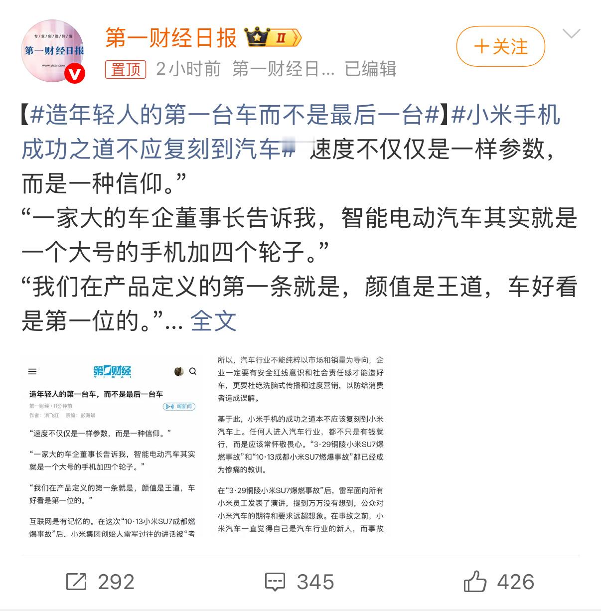 其实没有那么多阴谋论,第一财经日报发这个只不过是为了恶心小米、米粉和小米车主们。