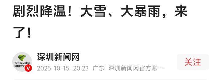 深圳气温断崖式暴跌10℃!全国雨雪冰冻模式开启,这些地方暖气开起来还得穿羽绒服 (来源:深圳新闻网 综合央视财经、中央气象台) 冷空气的刀锋已抵华南!昨日还穿着短袖的深圳人,今早推开窗竟被寒风吹得倒退三步。气象数据显示,本轮冷空气不仅让北方一夜入冬,更以罕见速度穿透南岭,直逼粤港澳大湾区。有市民调侃:“昨天空调制冷,今天暖气开足,广东的天气从来不会让你失望。” 但这场降温背后,远不止添衣保暖这么简单。当北方多地迎来初雪,南方暴雨持续破纪录,我们不禁要问:地球的气候系统是否正在按下“加速键”?专家分析,北极涡旋的异常活动与海洋温度骤变,正让极端天气从“偶然”变成“常态”。 在重庆,连续40天的阴雨让市民戏称“太阳已请假”;山东菏泽的网友晒出湿度计,惊呼“墙壁流泪比人还勤”。气候的戏剧性变化,早已超越天气预报的范畴,成为一场关乎生存适应的全民课题。一位农学专家坦言:“农作物生长周期被打乱,秋收冬藏的传统智慧正在失效。” 更值得警惕的是,城市基础设施在极端天气面前暴露脆弱性。昨日深圳部分低洼路段积水成河,有车主被困雨中直言:“一场雨就能让城市瘫痪,我们的排水系统还活在昨天。”当气候危机从新闻头条走进日常生活,每个人都是亲历者,亦是应对者。 然而,危机中往往蕴藏转机。浙江某社区通过搭建“邻里暖冬驿站”,为户外工作者提供免费姜茶;哈尔滨提前启动供暖,并开放地下停车场供流浪者避寒。这些微光汇聚的暖流,正是人类对抗自然无常的最美注脚。 有哲学家曾说:“气候是自然的语言,而人类终于开始倾听。”当冰川融化、海平面上升的警告不绝于耳,本轮冷空气或许是一次集体觉醒的契机。从减少碳排放到优化城市设计,每一个行动都在为未来投票。 明日清晨,当你再次站在寒风中等待公交时,不妨想想:这件羽绒服背后,是一个正在重新校准的星球。而你我每一次关掉闲置电源、选择绿色出行的瞬间,都在为地球减负。