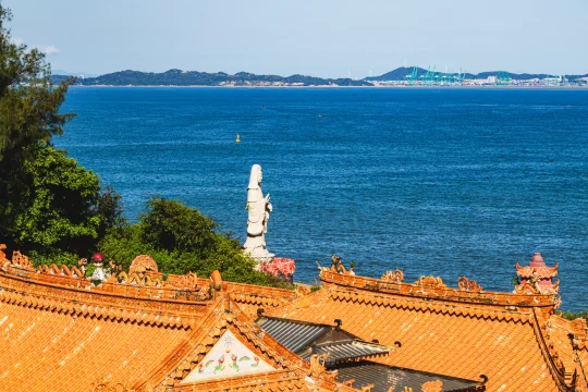 一边是大海,一边是寺庙 海上遇见佛 打卡收藏了很久的杨枝寺 赶上明媚好天气 这座海上寺庙真的很美 随手拍就很出片 站在海边的礁石上眺望 海和天都是蓝色的 📍汕头潮阳杨枝寺,推荐自驾前往