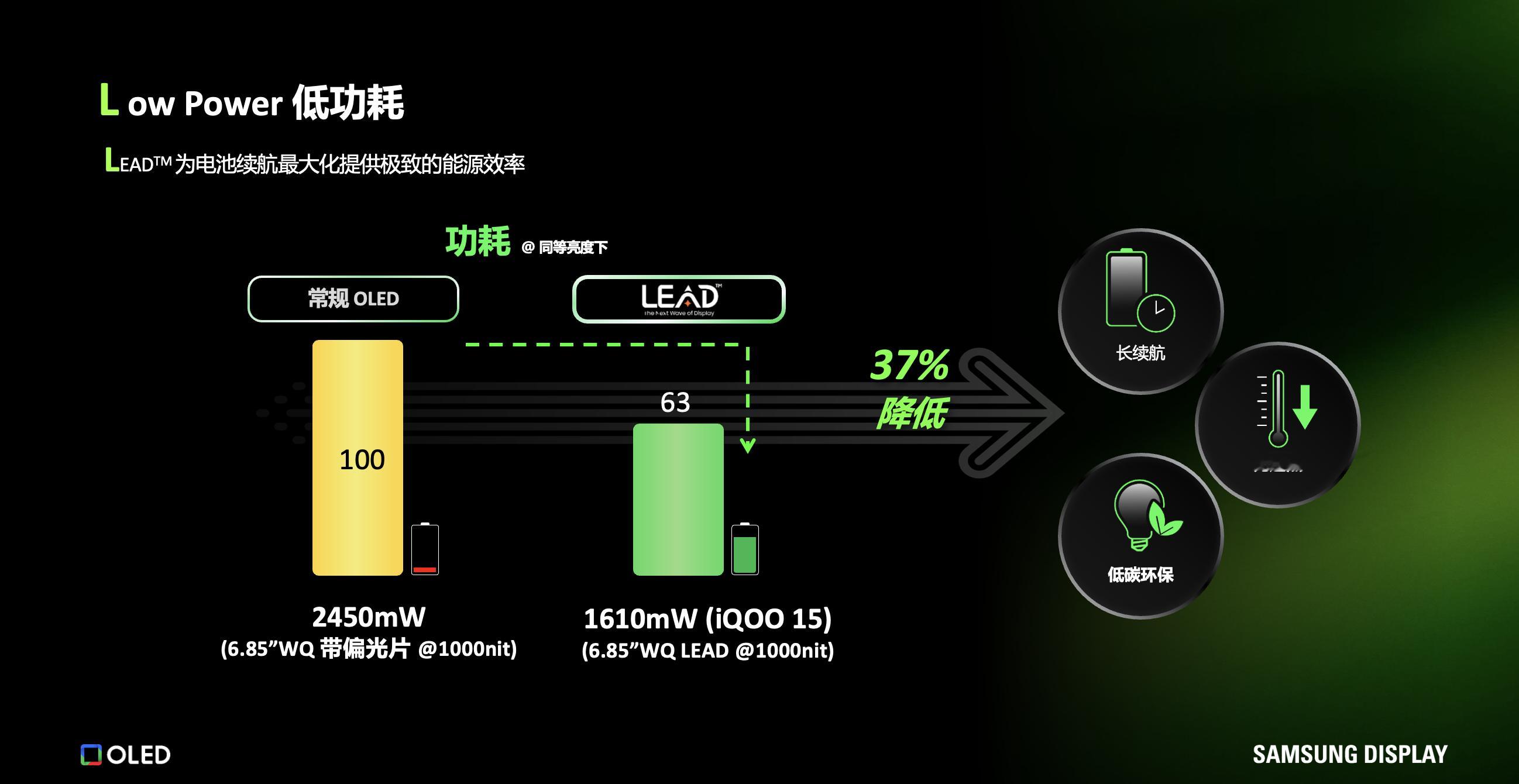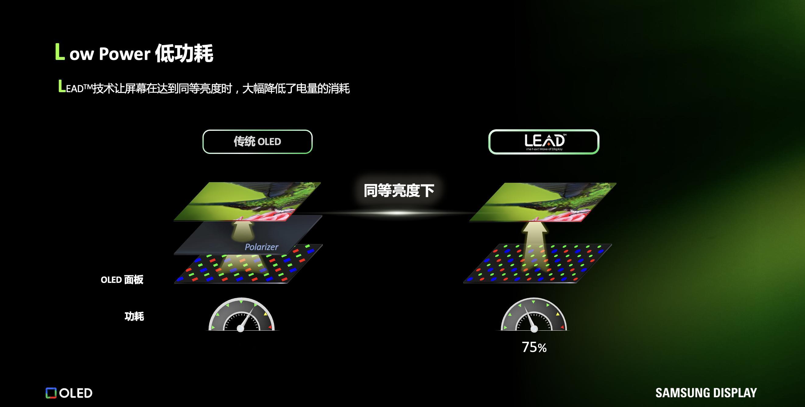 这块屏幕最重要的升级就是搭载了三星显示的 LEAD™ 技术,这是一种无偏光 OLED 技术,相比于传统 OLED 屏幕,LEAD™ 屏幕功耗更低,能有效延长电池寿命,而且低功耗还能降低手机温度,长时间玩游戏也不会发烫影响体验[抱一抱]