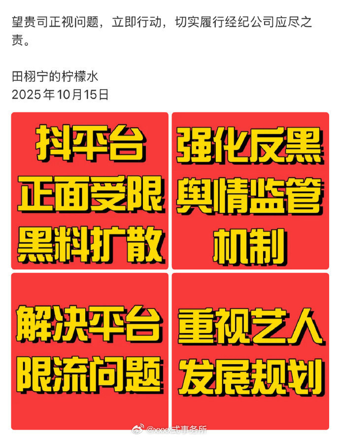 请华策重视田栩宁粉丝诉求