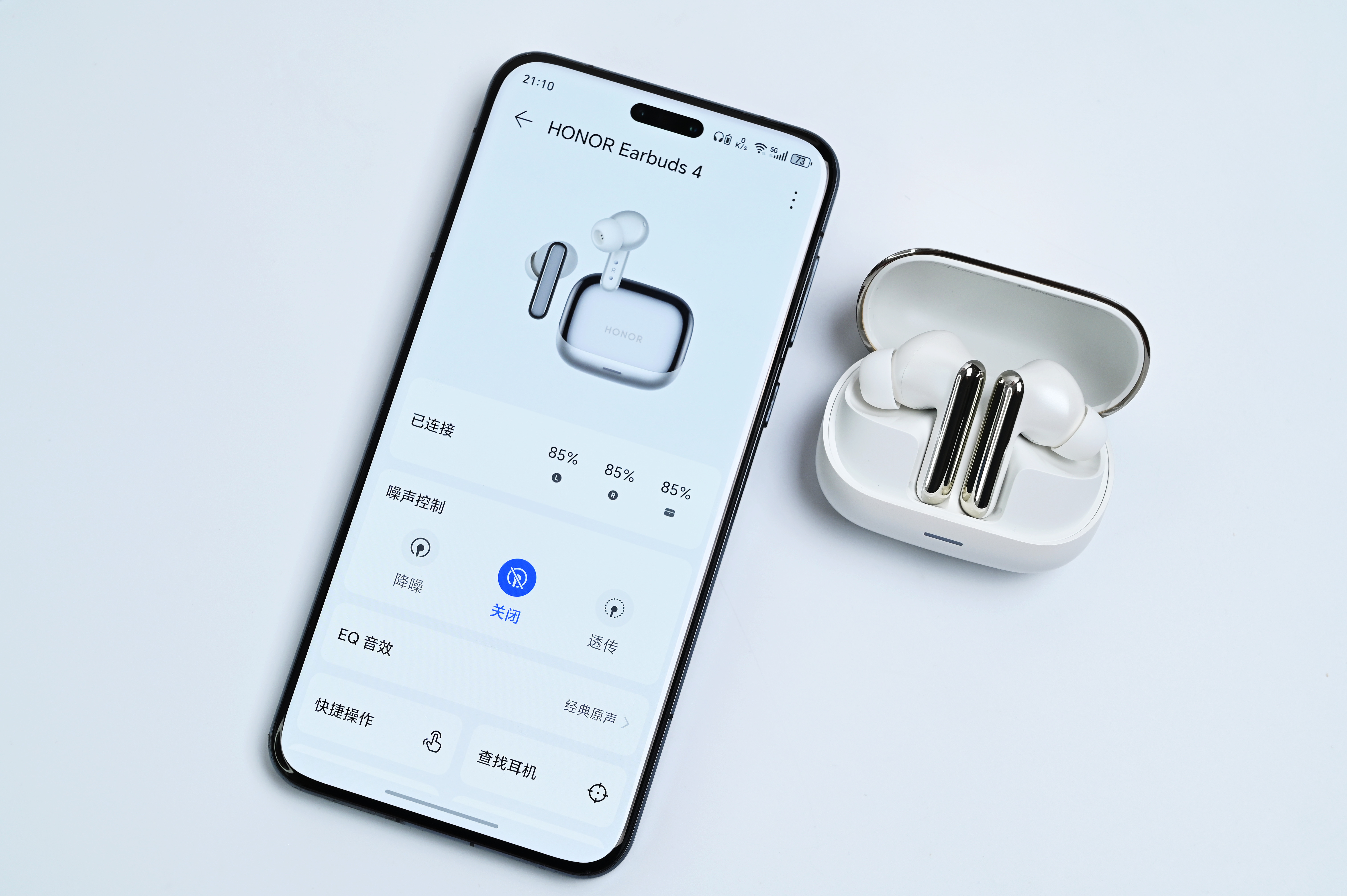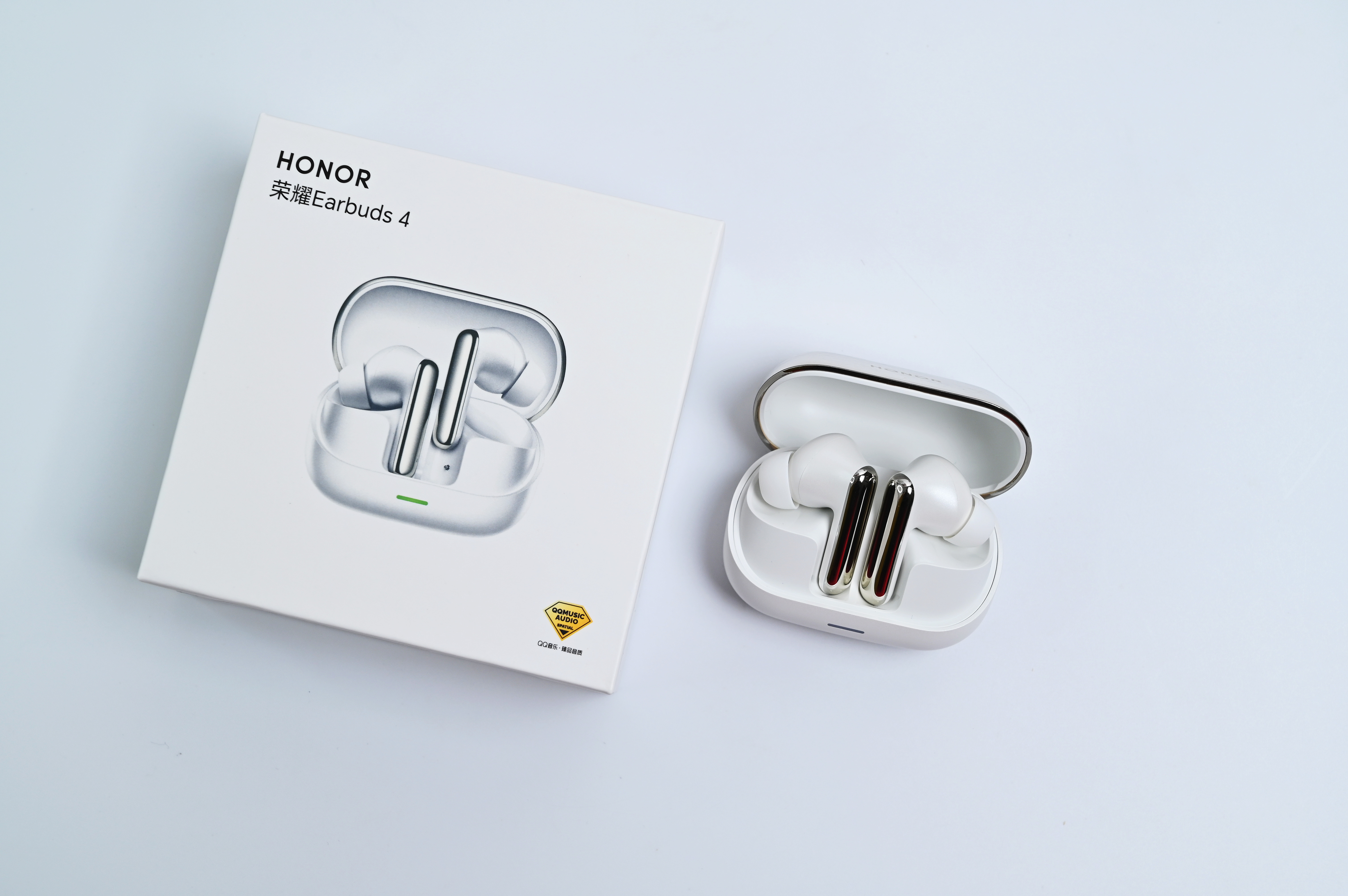 荣耀Earbuds 4珠光白,支持50dB深度降噪,46小时超长续航,双镀钛动圈音质不错。支持YOYO语音播报和佩戴检测,颜值也非常不错,大家喜欢吗?